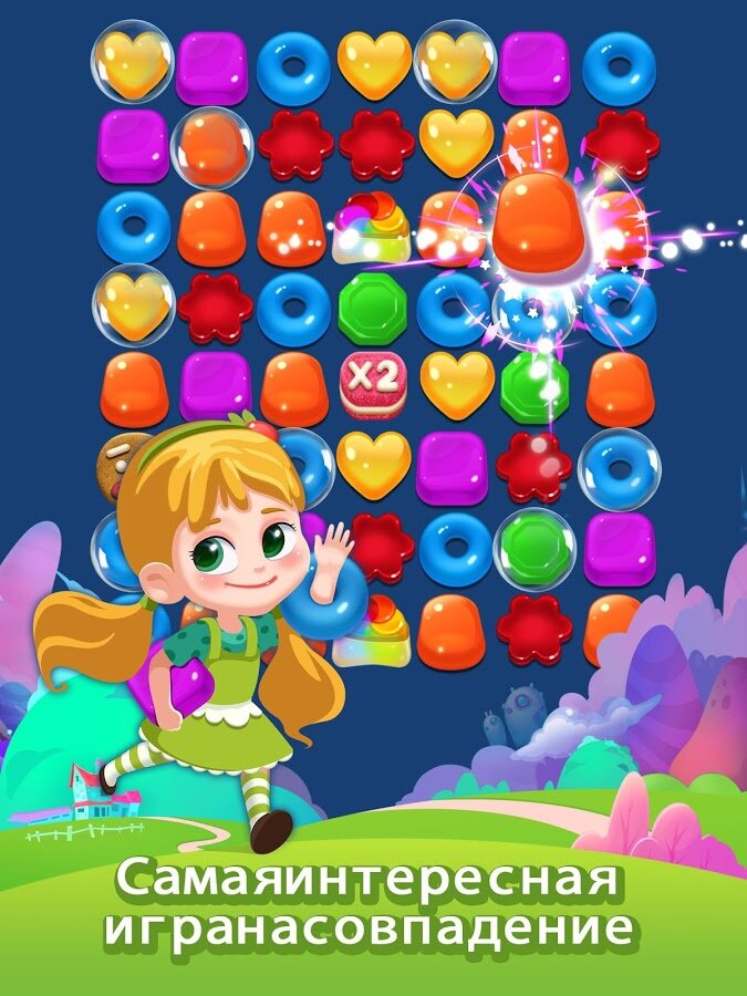 Jellipop Match — собирайте три в ряд, и помогите ей спасти принца и достичь счастливого конца. Жадный монстр напал на королевство, Алиса должна его остановить и найти свою настоящую любовь!