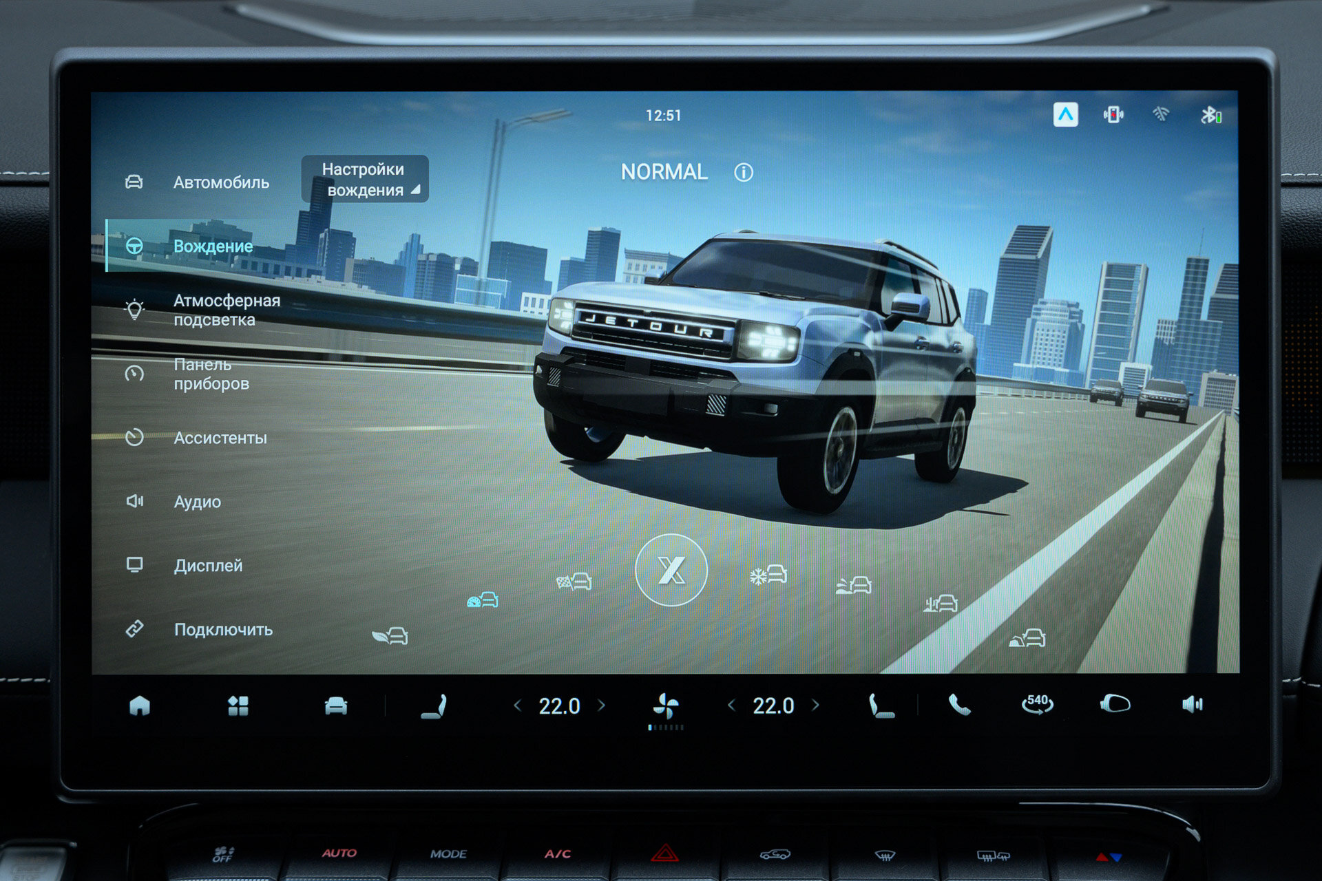 К основному экрану вопросов нет. Большой, красивый, работает быстро (чип Snapdragon 8155). Имеется CarPlay и Android Auto без проводов. Один момент, верхняя шторка будет недоступна при их активации. Если любопытно, что там в меню, листайте большую галерею ниже.