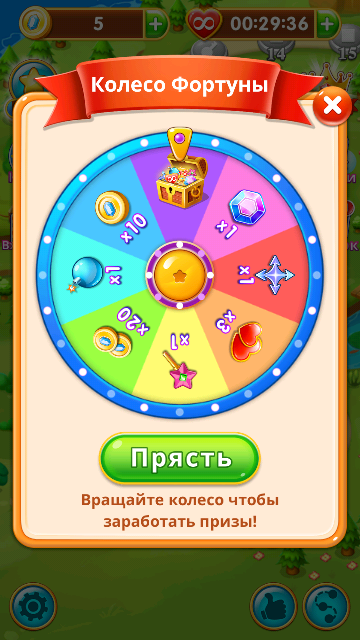 - Существует колесо фортуны, где ты можешь опробовать свою удачу! Крути колесо и получай ценные призы.