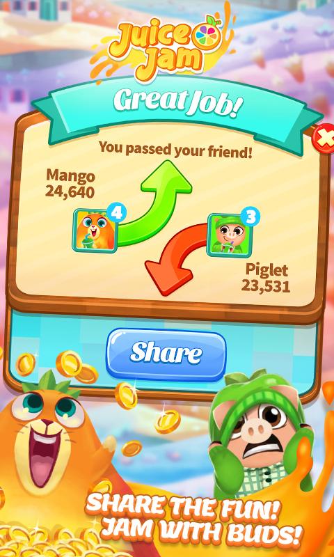 Juice Jam — создатели хитовой игры, Cookie Jam, представляют собой новую похожую игру-головоломку с кучей фруктовыми проблем!