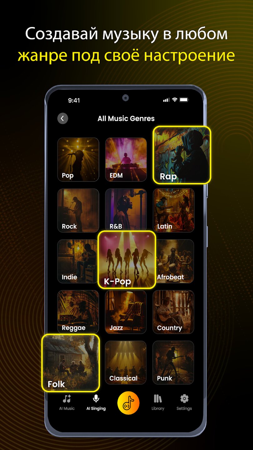 - Исследуйте широкий спектр музыкальных жанров и стилей.