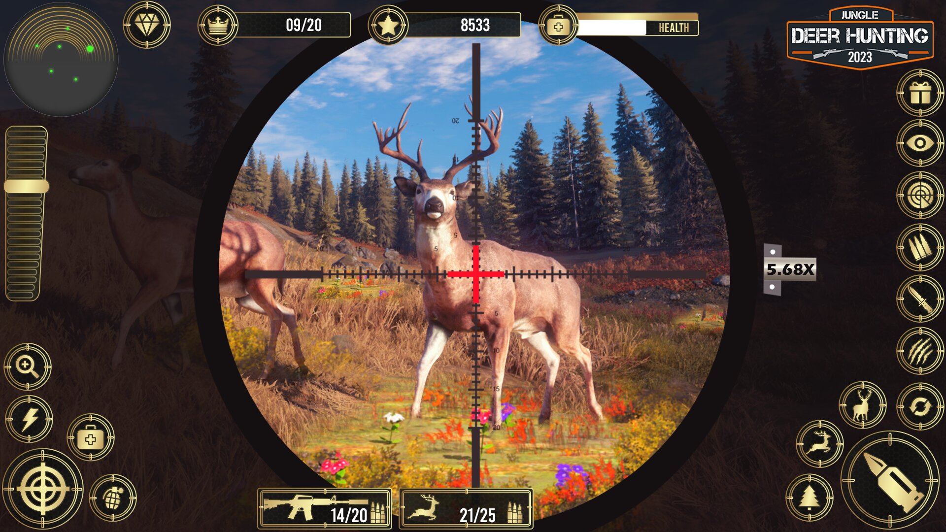 Эта захватывающая игра предлагает вам стать лучшим охотником в дикой природе, выслеживая разнообразных диких животных. Вы будете пробираться через густую тропическую растительность, выслеживая таких животных, как олени, медведи и горные козлы, с помощью высокоточных снайперских винтовок. Каждая охотничья миссия требует тщательного планирования и скрытного подхода, поскольку вам необходимо изучить поведение животных. Реалистичная система баллистики учитывает расстояние и движение, поэтому каждый выстрел должен быть тщательно продуман. За свои успехи вы получаете монеты, которые можно потратить на улучшение своего арсенала оборудования.