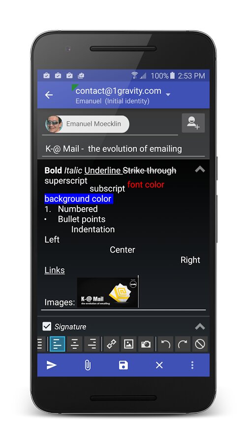 K-@ Mail — это мощный и удобный почтовый клиент для Android, который поддерживает несколько почтовых ящиков и множество функций для удобной работы с электронной почтой. Интуитивно понятный интерфейс и настраиваемые параметры позволяют пользователям настроить свой опыт использования электронной почты в соответствии с их потребностями.