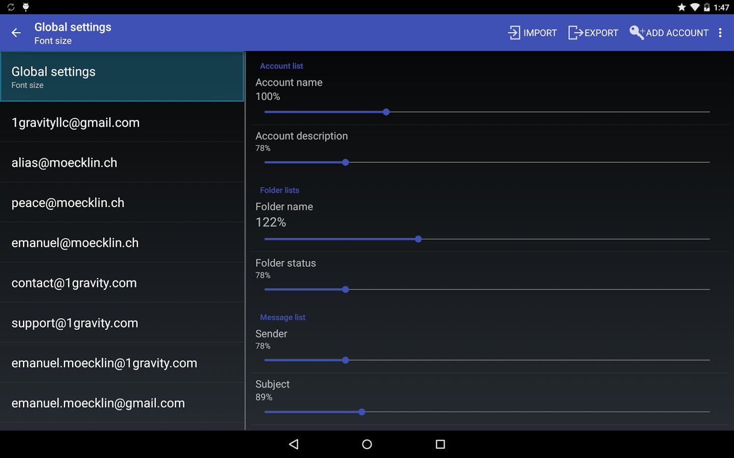 ★ Self-signed certificates weren't accepted any more. If you use self-signed certificates you have to accept them again (account settings — fetching mail — incoming server — next)