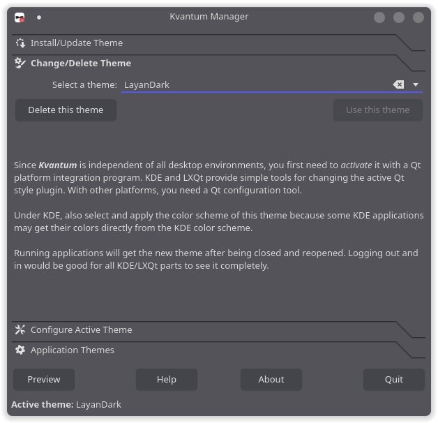 В открывшемся окне перейдите на вкладку Change/delete theme и в выпадающем списке выберите LayanDark, а затем нажмите Use this theme. Изменения не заставят себя ждать, но это только начало.
