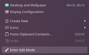 Сейчас же мы поступим проще и создадим док-панель из «подручных» средств. Кликните правой кнопкой мыши по свободному месту на рабочем столе и в выпавшем меню выберите «Enter Edit Mode» («Перейти в Режим Редактирования»).