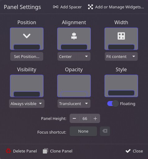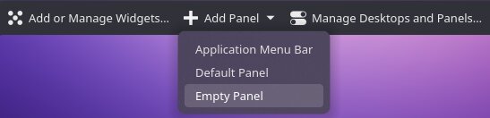 Возможно вы заметили, что кроме иконок после применения настроек пропала и панель задач со значками запущенных программ. Я хотел добавить latte-dock, как советуют в интернете, но его поддержка в KDE 6 закончилась. Из репозитория он удален, а более современный cairo-dock попросту не запускается. Я получал советы взять последнюю версию исходников latte-dock с патчами из Arch, но лучше оставлю это как задачу со звёздочкой для вашего самостоятельного изучения.