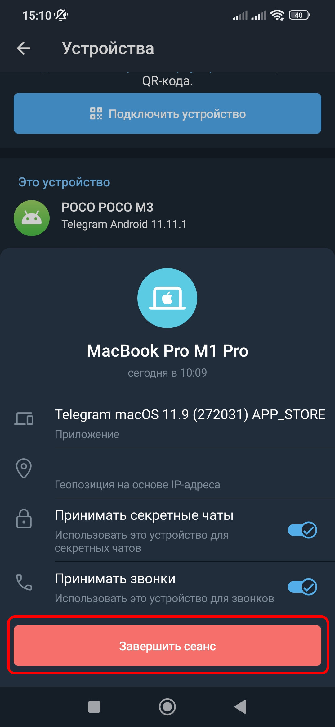 💡 Есть небольшой лайфхак — рекомендуется отключить все активные сессии, кроме текущей на смартфоне, и затем по мере необходимости заново входить в профиль на всех нужных устройствах. В этом случае вы будете уверены в том, что не сохранили сессию на гаджете постороннего человека.