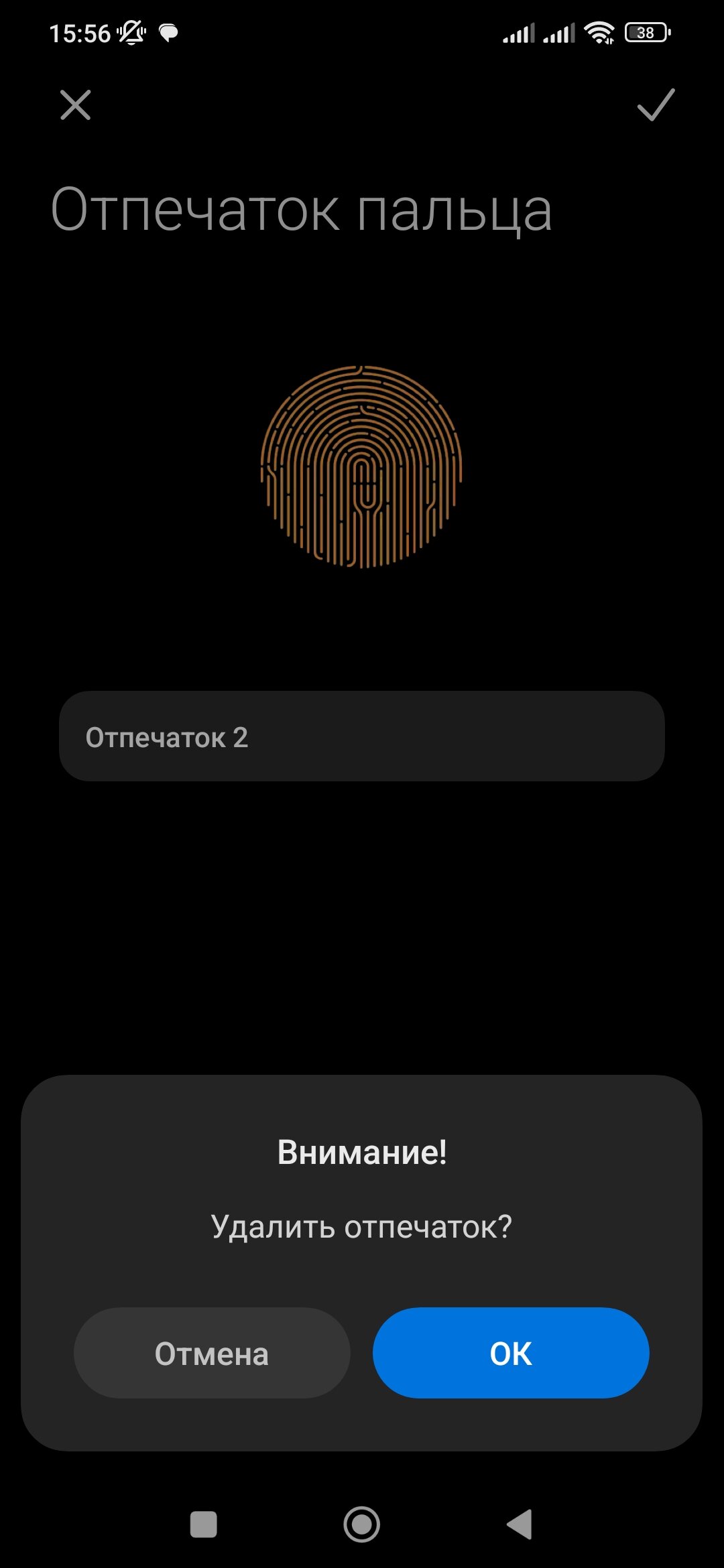 💡 Если ранее в настройках вы не подписали отсканированные отпечатки, можно смело удалить всё, а затем добавить только свои.
