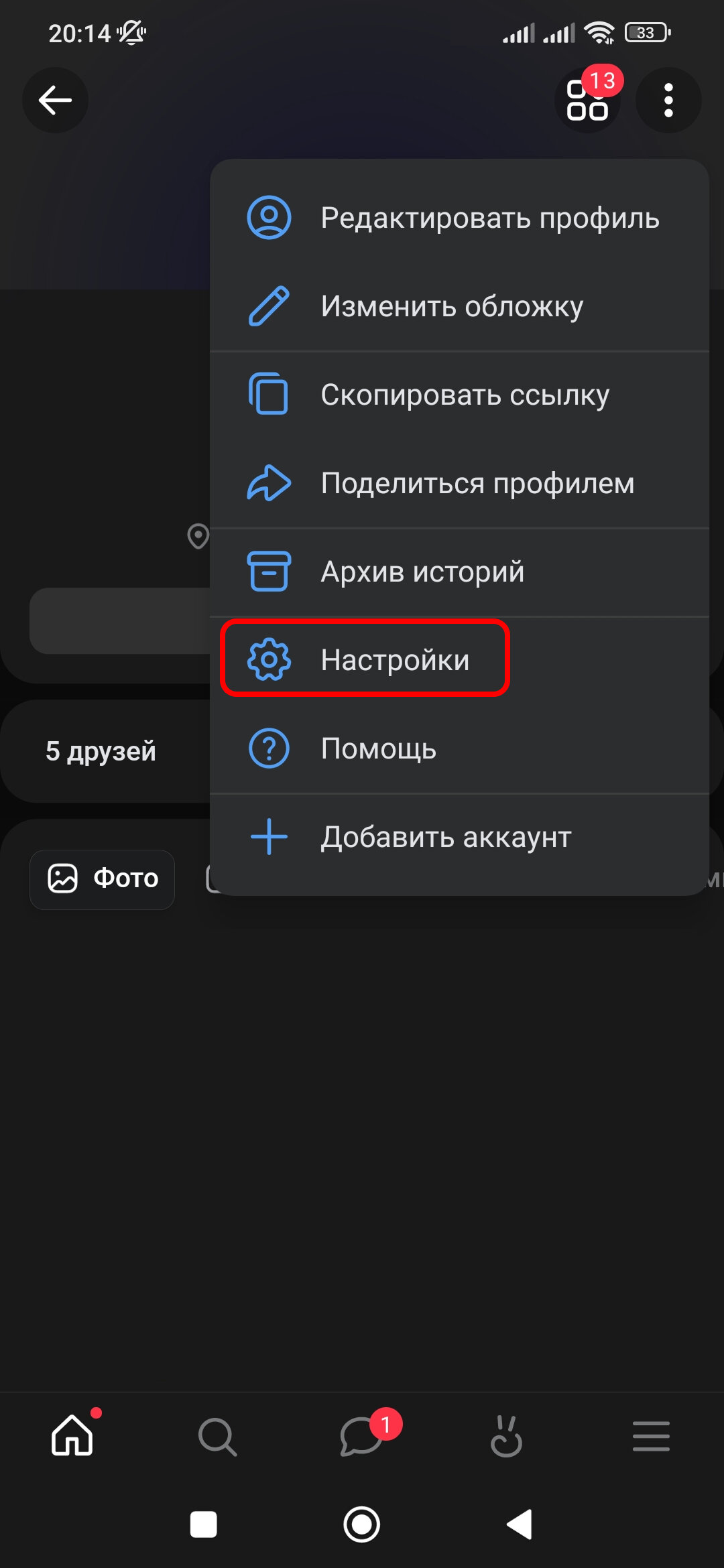 - нажмите на три точки в правом верхнем углу (иконка шестерёнки на iOS);