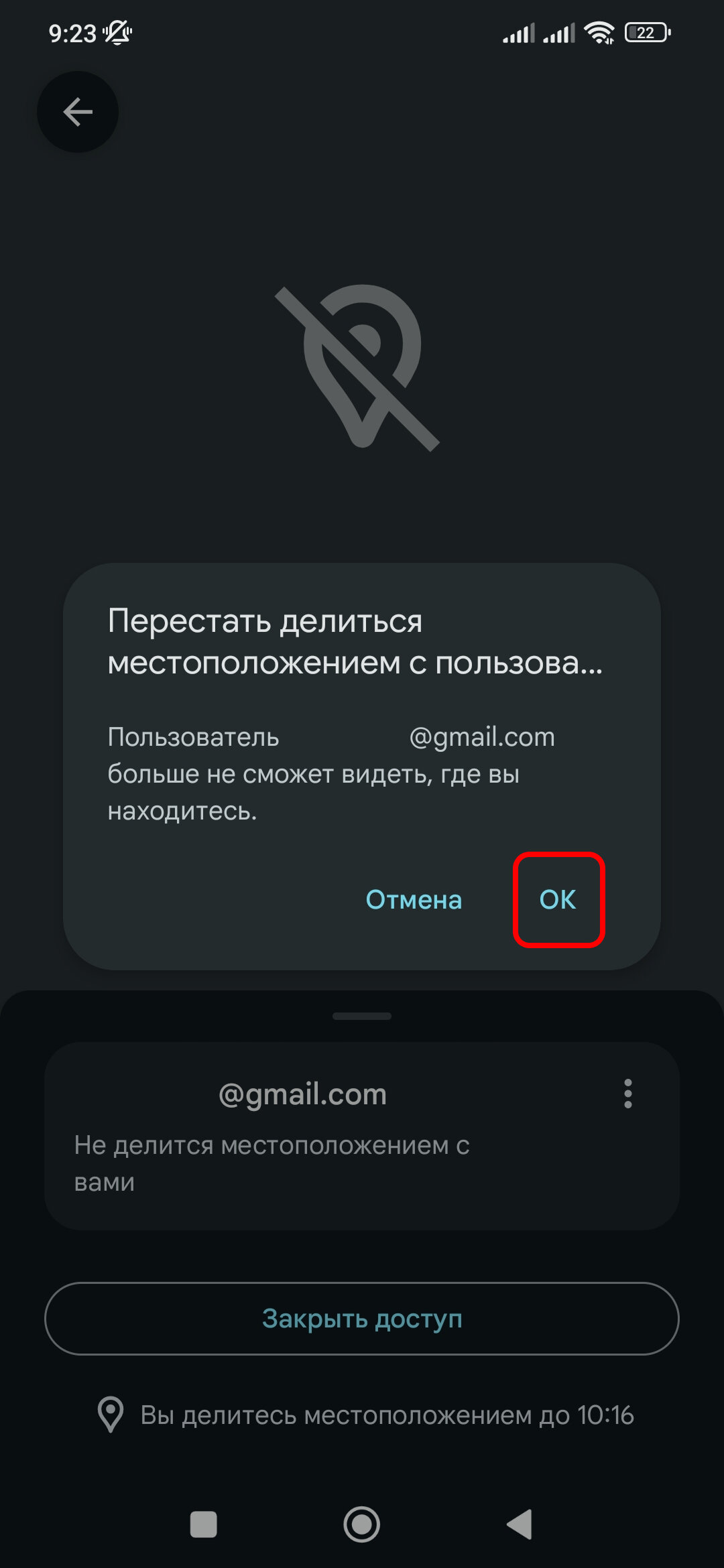 - нажмите на кнопку «Не делиться геолокацией» (Stop Sharing My Location);