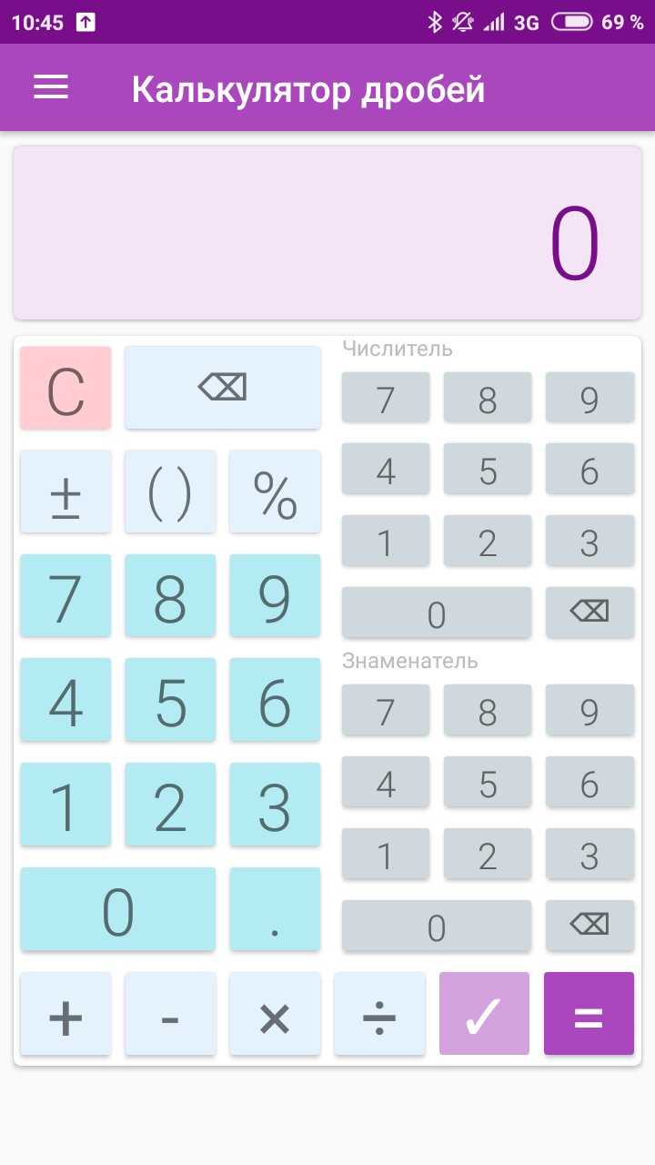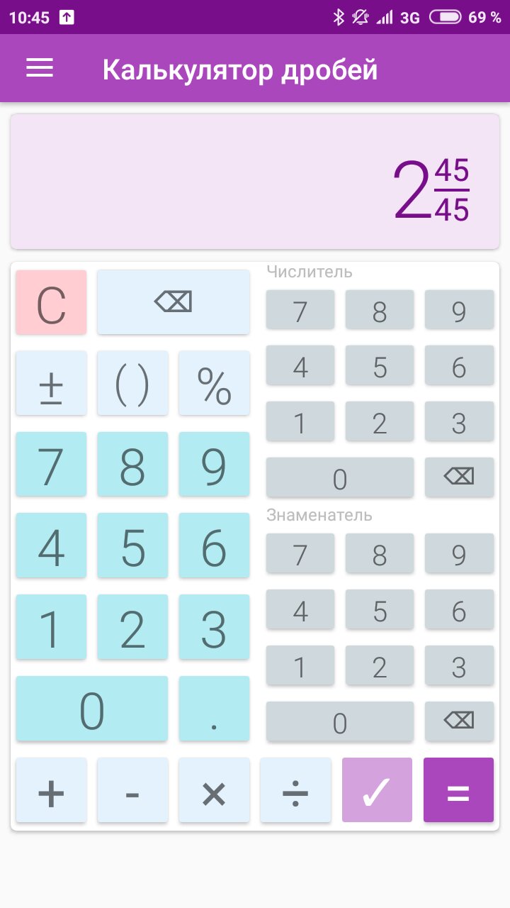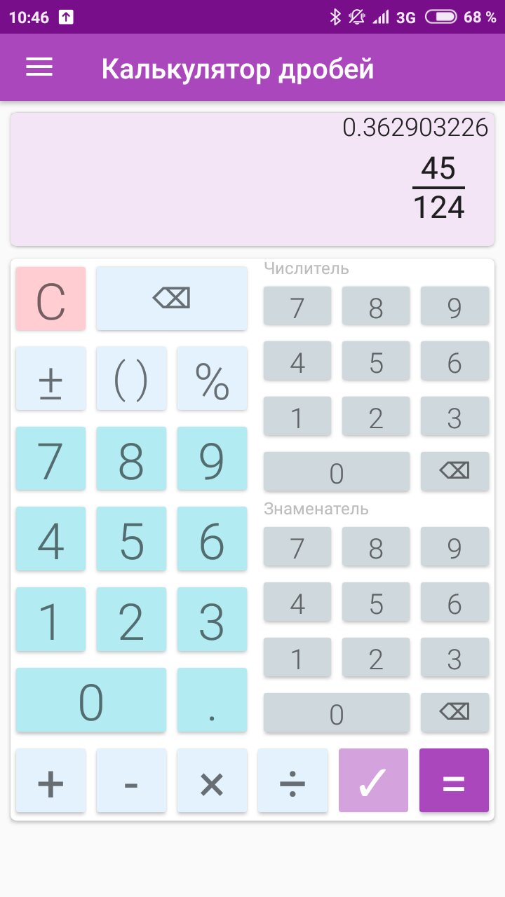 Калькулятор дробей — приложение представляет собой калькулятор дробей с обычным и десятичным представлением, перевод дробей из одного вида в другой, упрощение дробей.