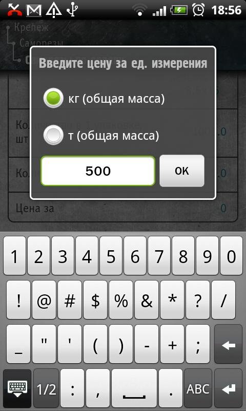 - Вводя произвольные значения для продукции нестандартных размеров;