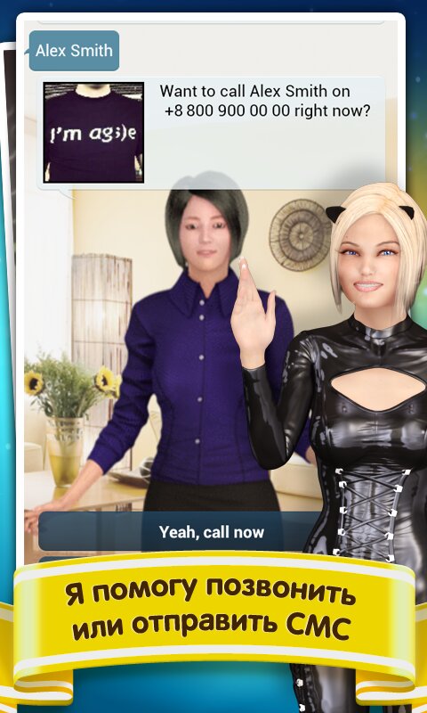 Со временем твоя виртуальная подруга будет учиться новым возможностям! Вы будете играть, узнавать интересные вещи, обсуждать новости. Ты даже сможешь переодевать ее! В общем, вы должны понравиться друг другу