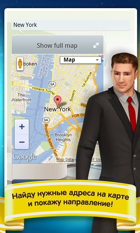 Установив приложение, ты сразу начнешь знакомство с девушкой. Она узнает твое имя, пол, возраст и местоположение, либо сама соберет все данные из профиля в социальной сети, если ты его укажешь. После этого она предложит установить свой виджет и начнет рассказывать о своих умениях.