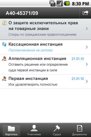 Картотека арбитражных дел — представляет полную информацию о делах, рассматриваемых во всех 113 арбитражных судах. Данные о движении дел обновляются каждый час. Уже сейчас вы можете получить доступ к более чем 5 миллионам судебных дел. Для этого достаточно просто зарегистрироваться в картотеке на Android.