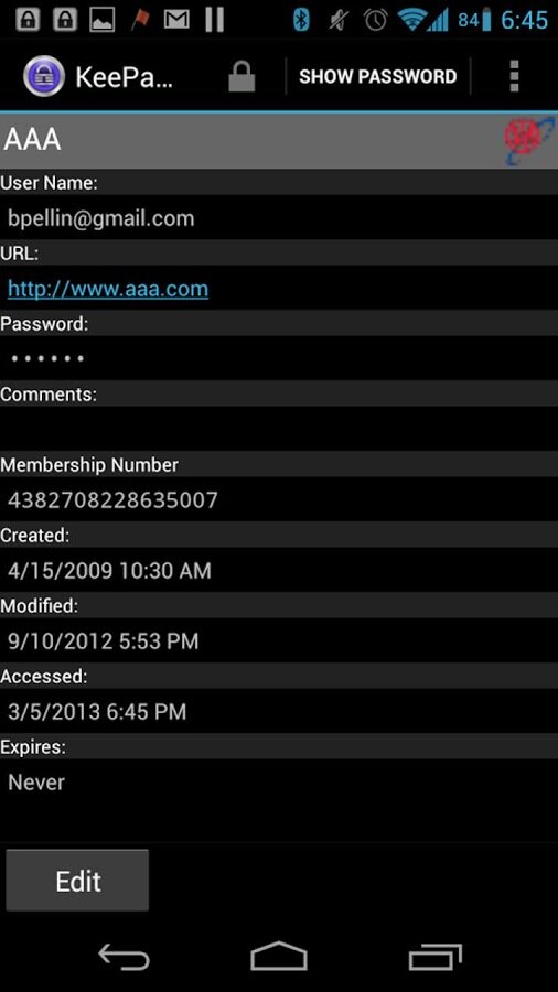KeePassDroid — программа для хранения паролей. Порт KeePass Pasword Safe. На данный момент полностью поддерживаются базы, созданные в KeePass первой версии, и базы от второй версии в режиме «Только чтение».
