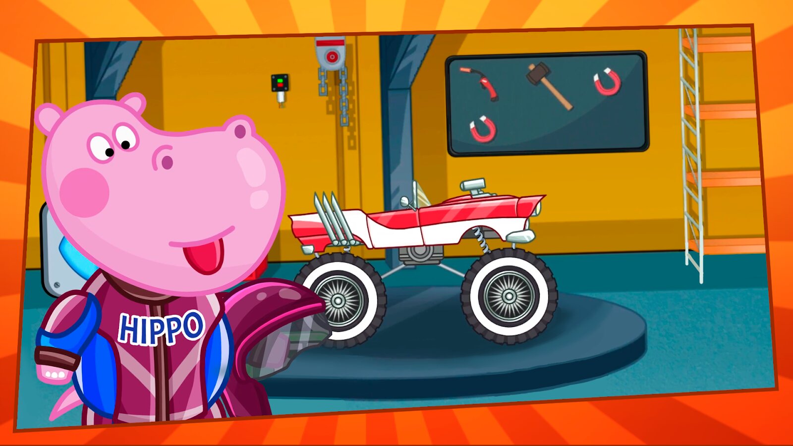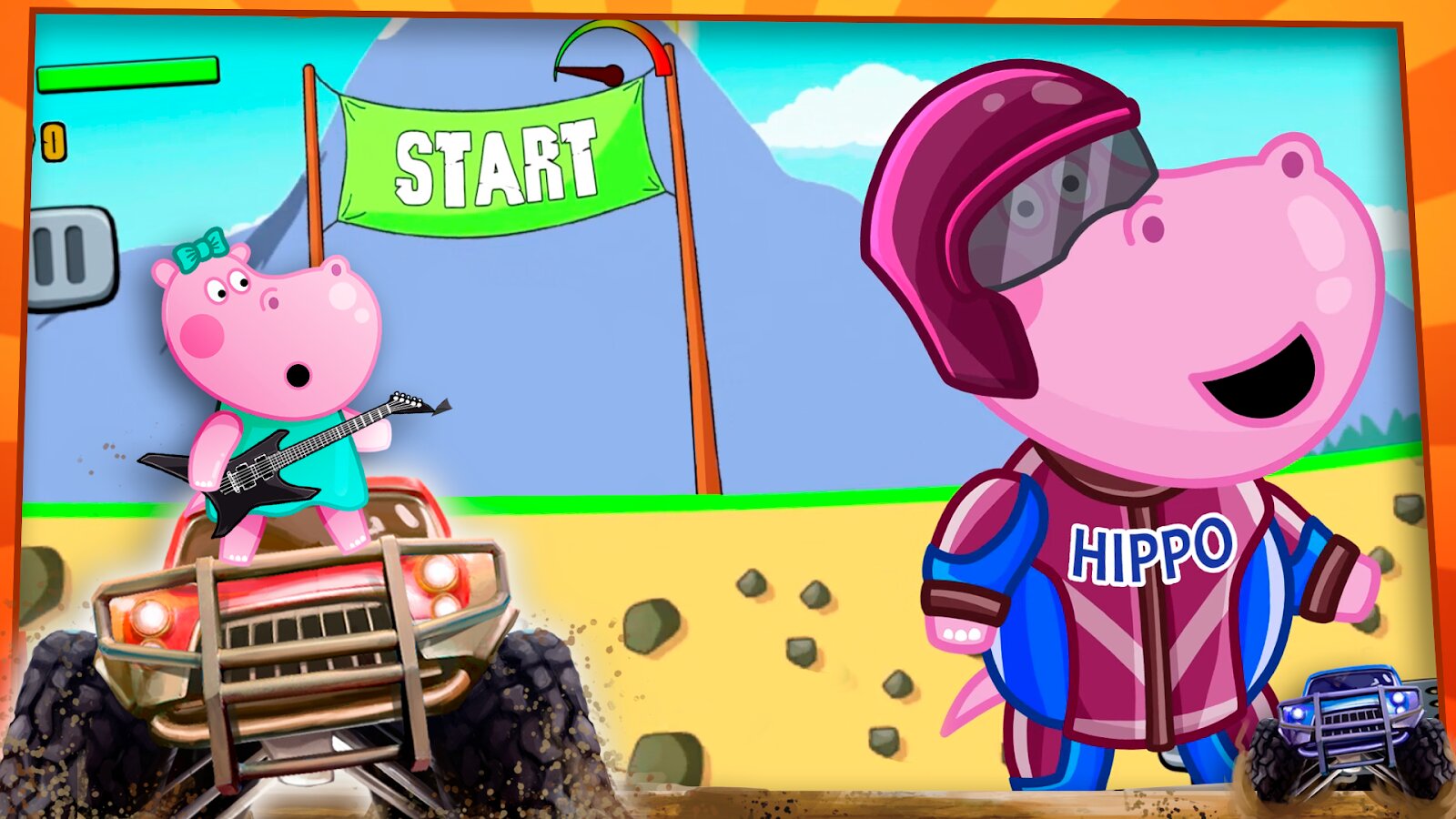 Детский Monster Truck — это экстремальные захватывающие гонки по бездорожью для детей с Гиппо. Игра адаптирована для детей младшего возраста.