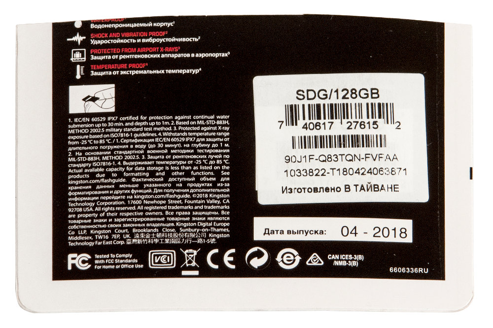 Эта модель карты памяти также поставляется в черном блистере, но надписи сделаны не серебристым, а золотым цветом. Оборотная сторона упаковки такая же, как и у модели Go!, то есть имеет черный цвет и описание на нескольких языках. На наклейке указана страна-производитель,