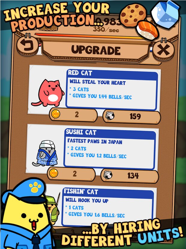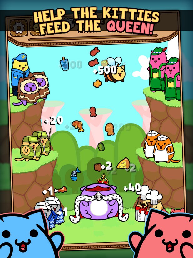 За каждый кусочек еды, отданный королеве, вы зарабатываете баллы, которые сможете использовать, чтобы нанять новых кошек.