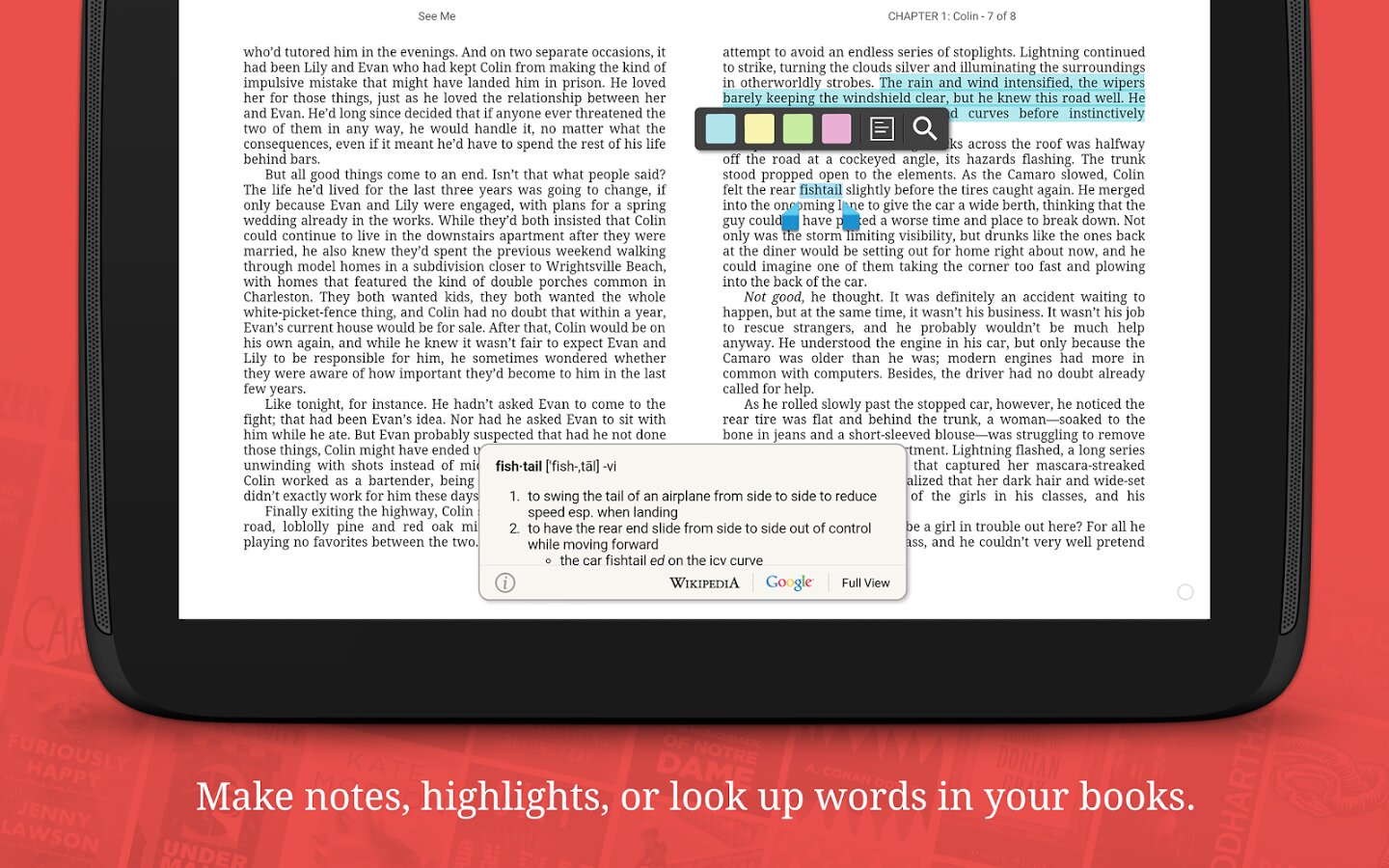 - Выделяйте ваши любимые места и добавляйте заметки к своим книгам
