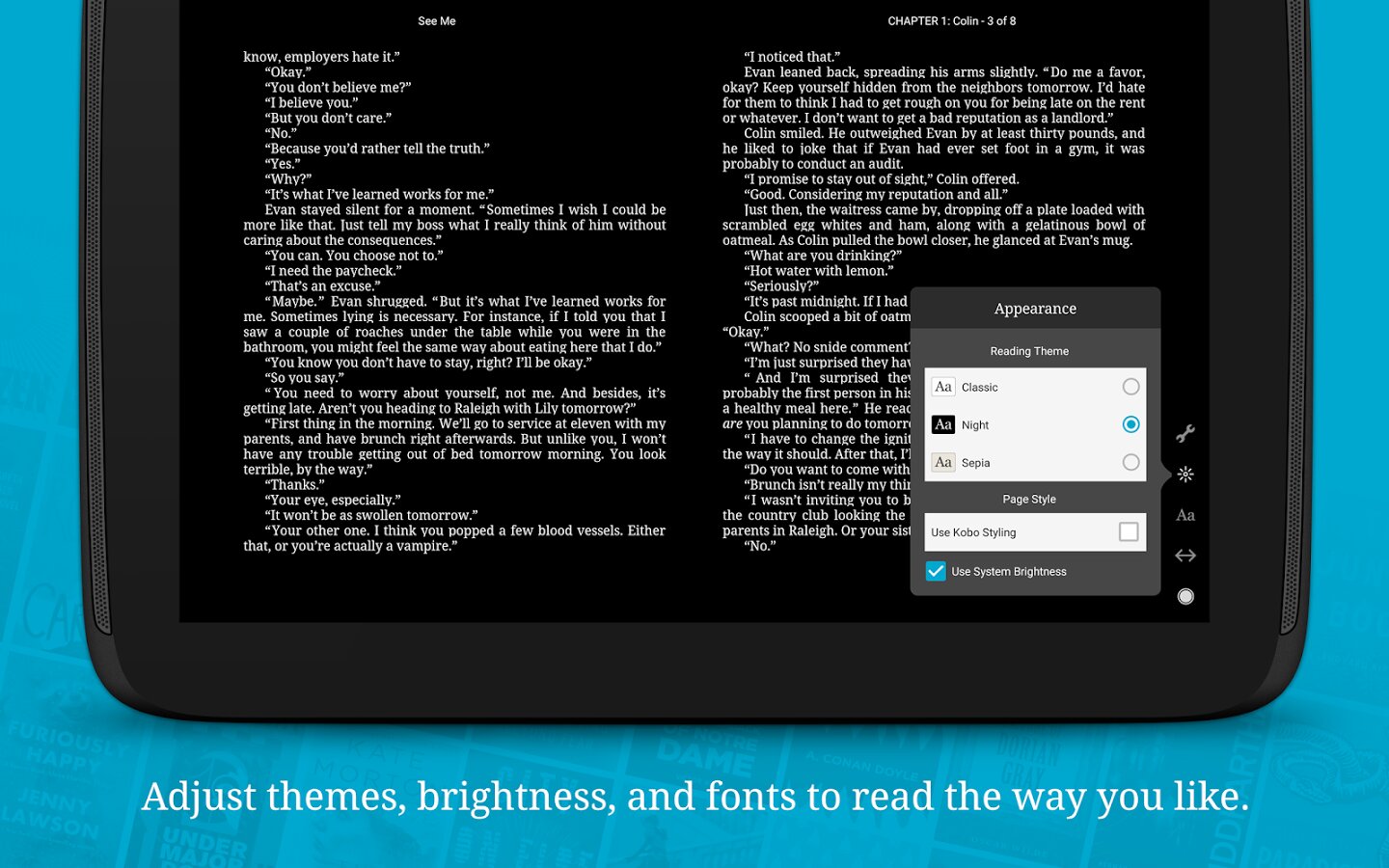 - Синхронизация на всех ваших устройствах с приложением Кобо (закладки и скаченные книги)