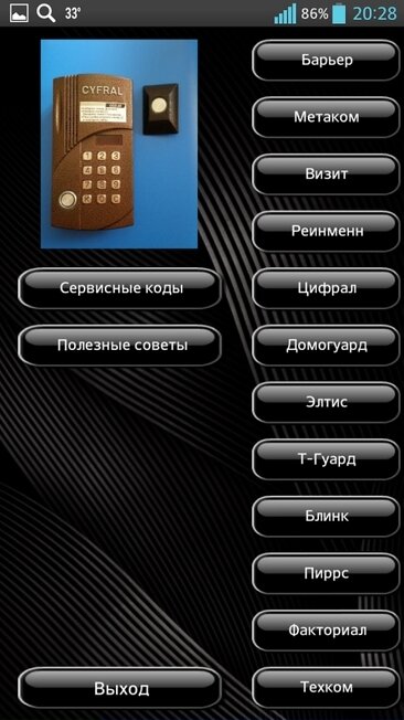 Программа представляет из себя оффлайн-руководство по кодам аварийного открытия домофона наиболее известных моделей. Программа представлена в двух изданиях-обычное и расширенное.