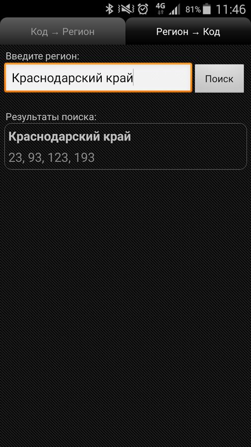 Коды регионов — приложение определяет регион, за которым в России закреплён код на автомобильном номере (ГОСТ Р 50577-93). Всего несколько нажатий и вы сможете по коду региона найти субъект федерации РФ, к которому он принадлежит. К примеру, введя код «51», вы получите информацию о том, что этот код закреплён за Мурманской областью.