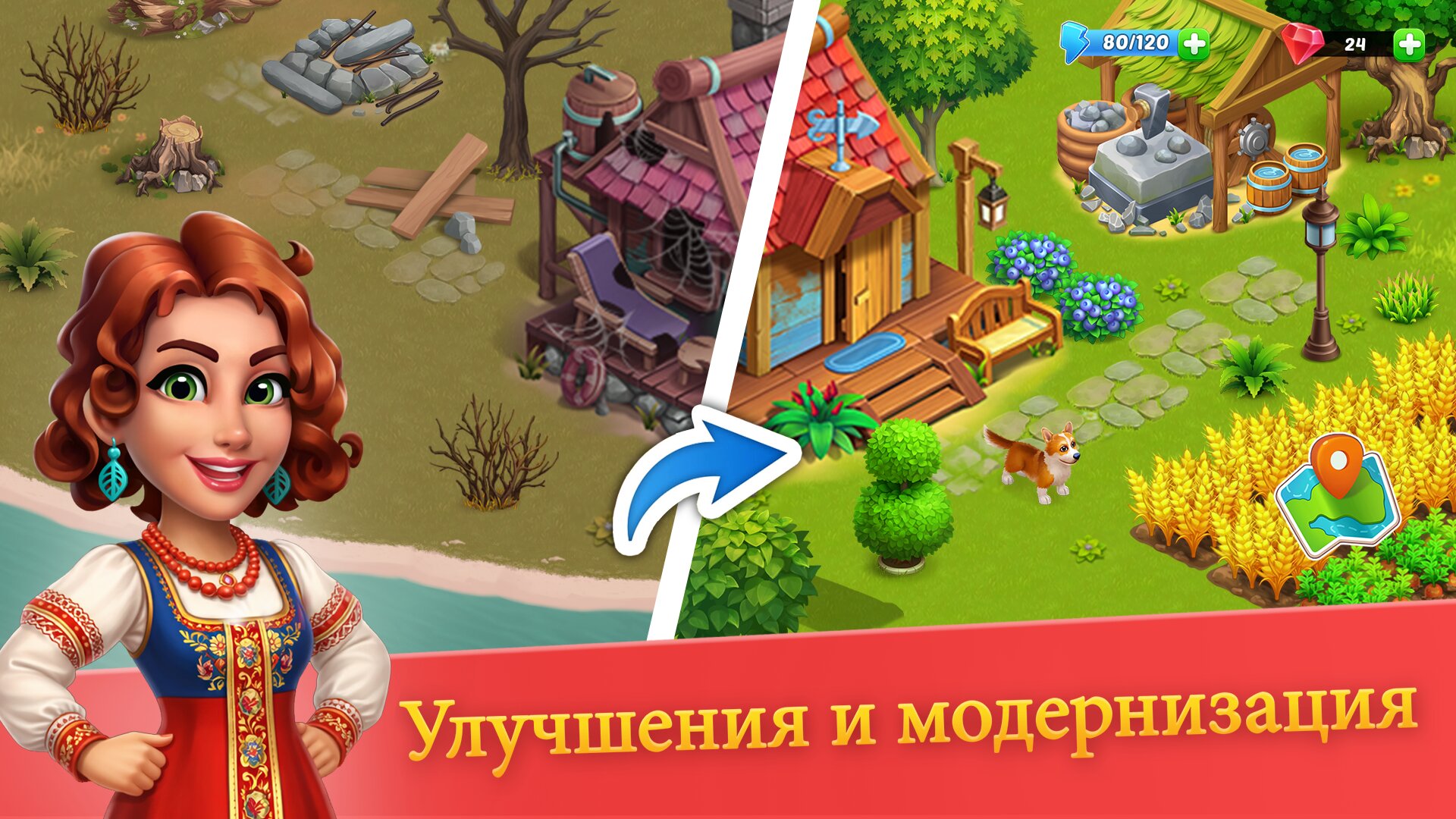 - Создание базы и семейной фермы для улучшения качества жизни и производительности.