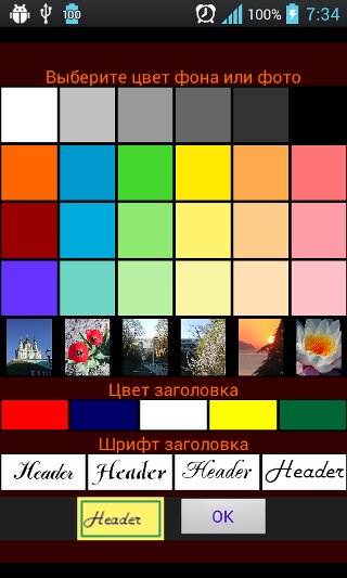 Выберете цвет основы, заголовка, текста.