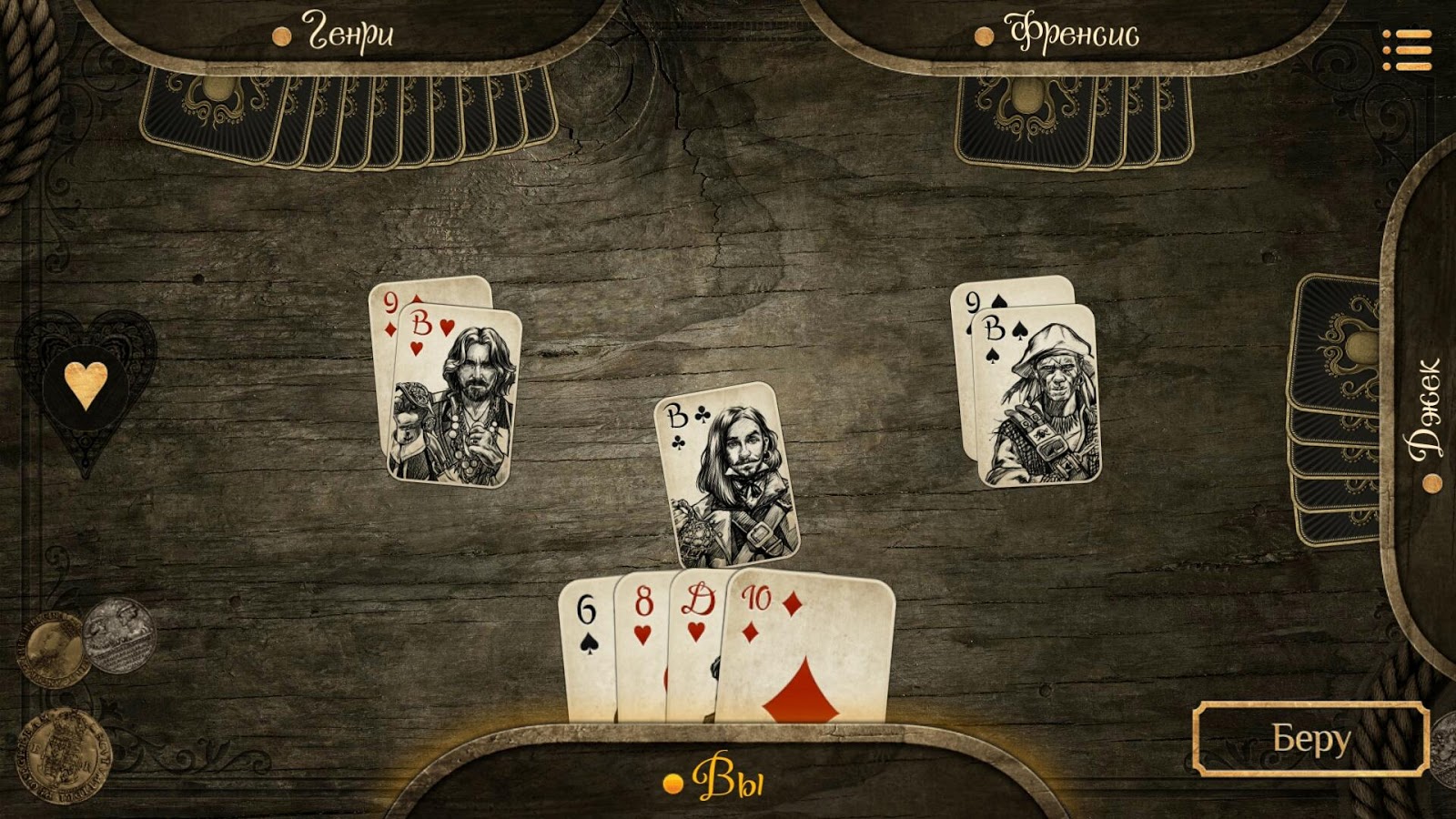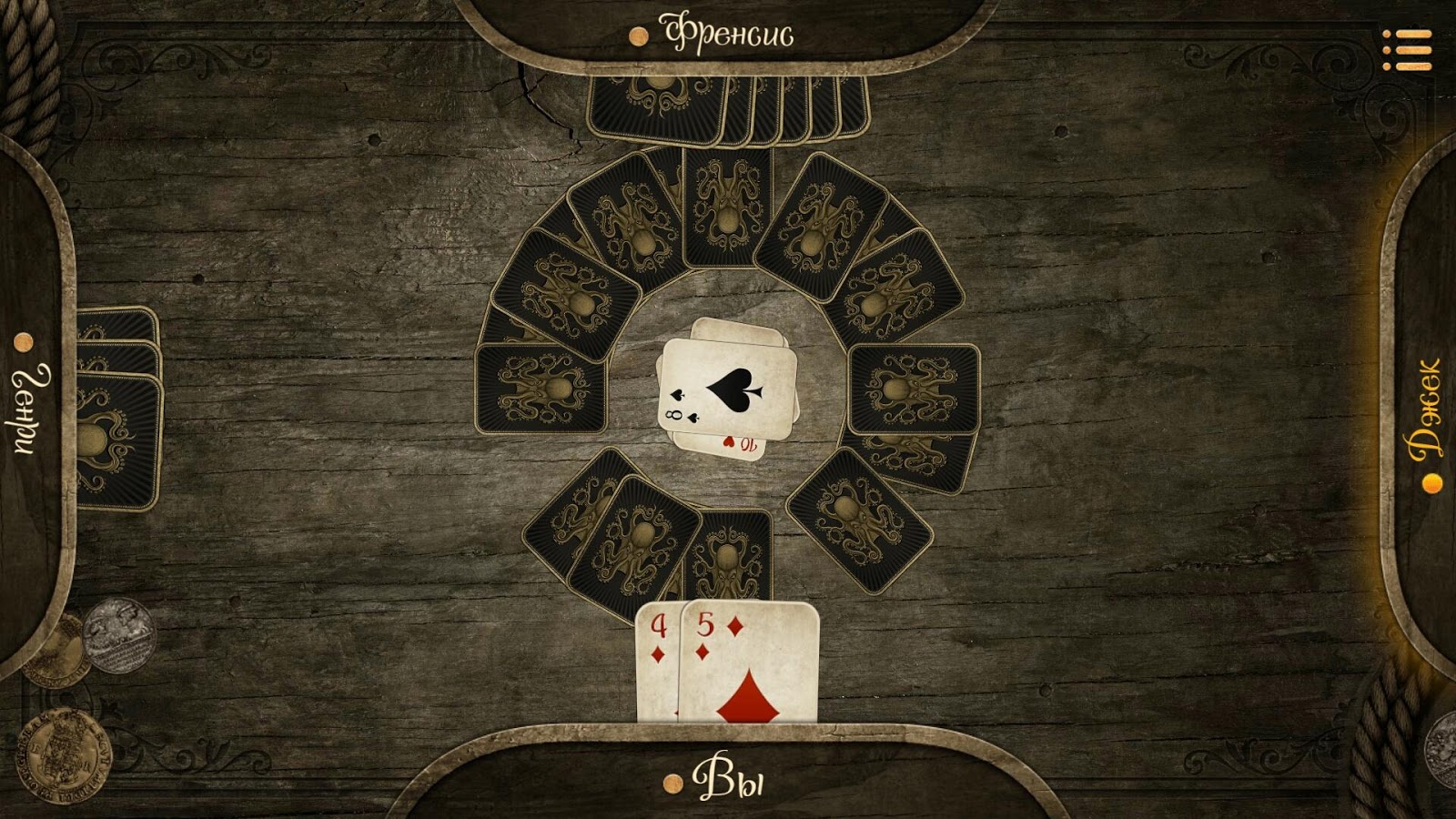 → Игры с пиратами ведутся на дублоны, все серьезно. Размер выигрыша зависит от вашей входной ставки и мастерства. Ставки для коротких игр небольшие. Ставки для продолжительных турниров выше, как и выигрыш.