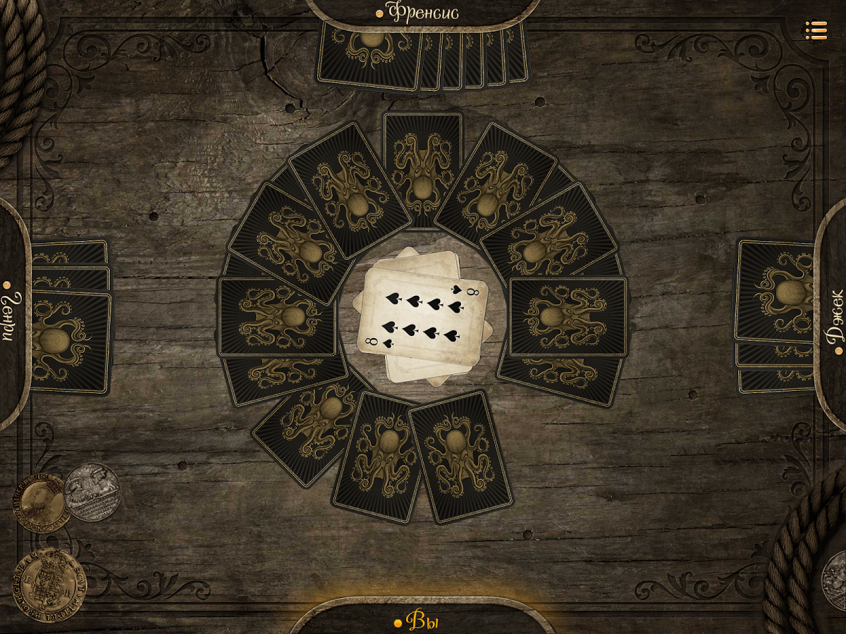 — Игра с пиратами ведется на дублоны, что с одной стороны добавляет ценности каждому ходу и поощряет осмысленную игру, с другой — добавляет игре азарта.