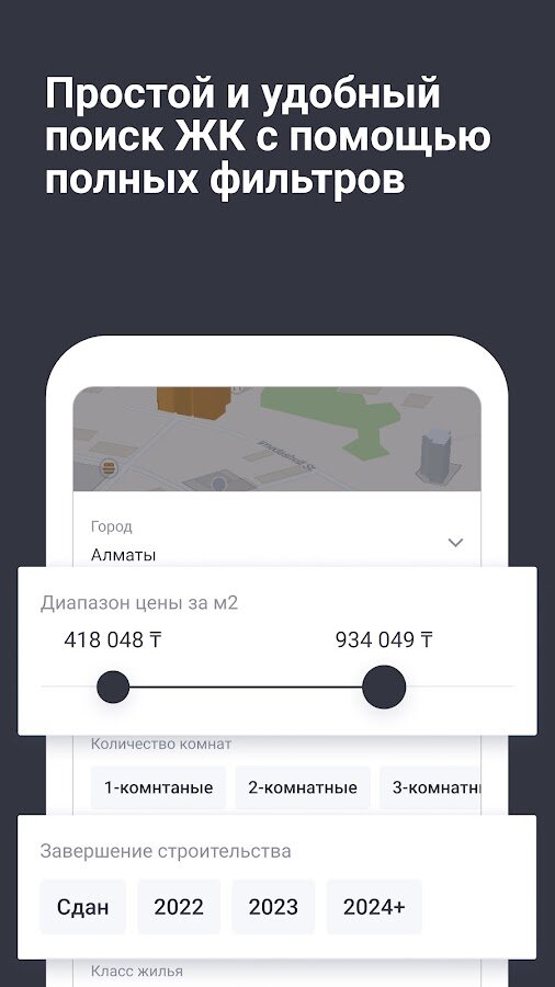 - Супер удобный поиск на карте. Выбирай среди всех квартир от застройщиков используя фильтры прямо на карте. Это действительно очень удобно!