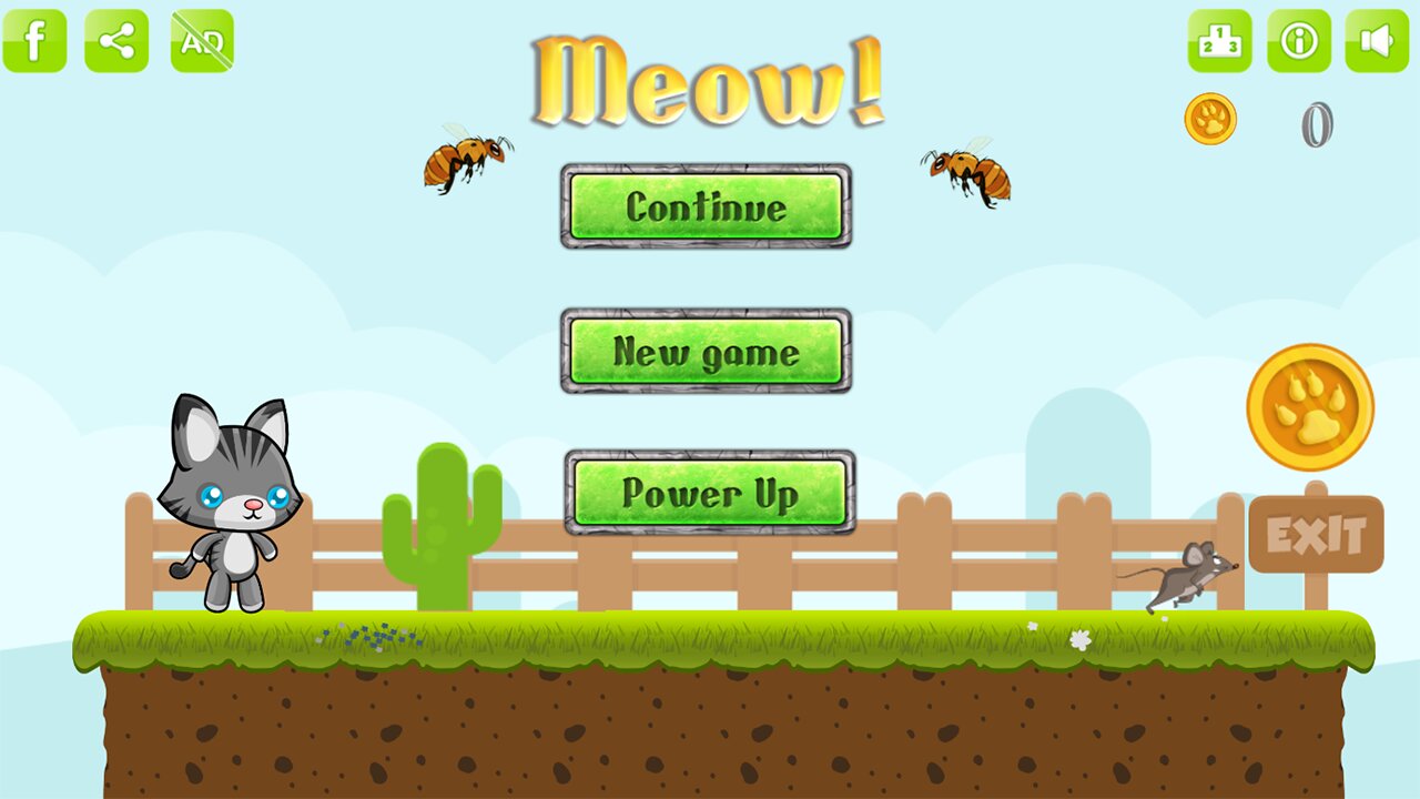 Кот Мяу — помоги котику по имени Meow догнать мышку! Преодолейте этот красочный и не большой мирок, в погоне за мышкой, где вроде бы все настроено против Вас…