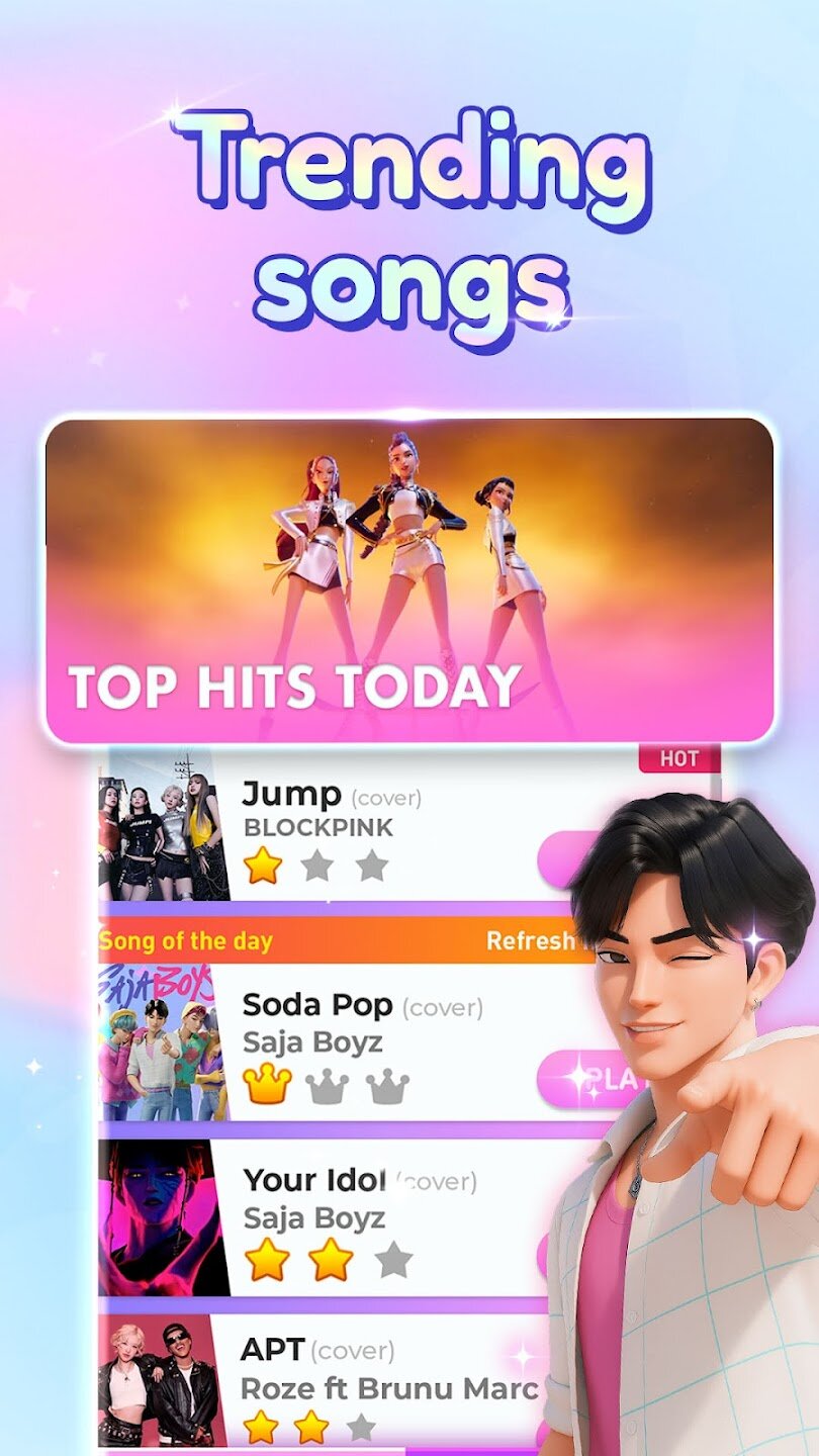Kpop Sing: Piano Game погружает вас в мир, где поп-музыка встречается с волшебными питомцами. Нажимайте на клавиши фортепиано в идеальном ритме под сотни запоминающихся поп-хитов и классических мелодий. Эта игра проста в освоении, но сложна в совершенствовании, предлагая увлекательный опыт как для новичков, так и для опытных любителей музыкальных игр. Разблокируйте очаровательных поющих питомцев, которые танцуют под вашу игру, и собирайте ежедневные награды, чтобы пополнить свою коллекцию.