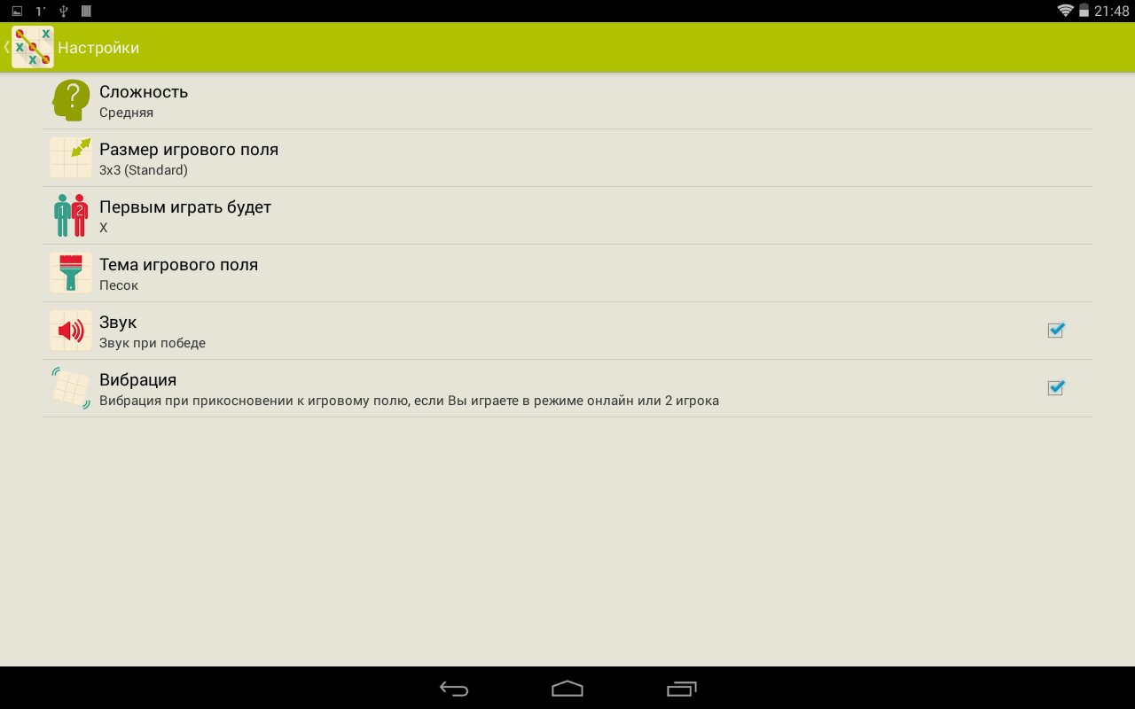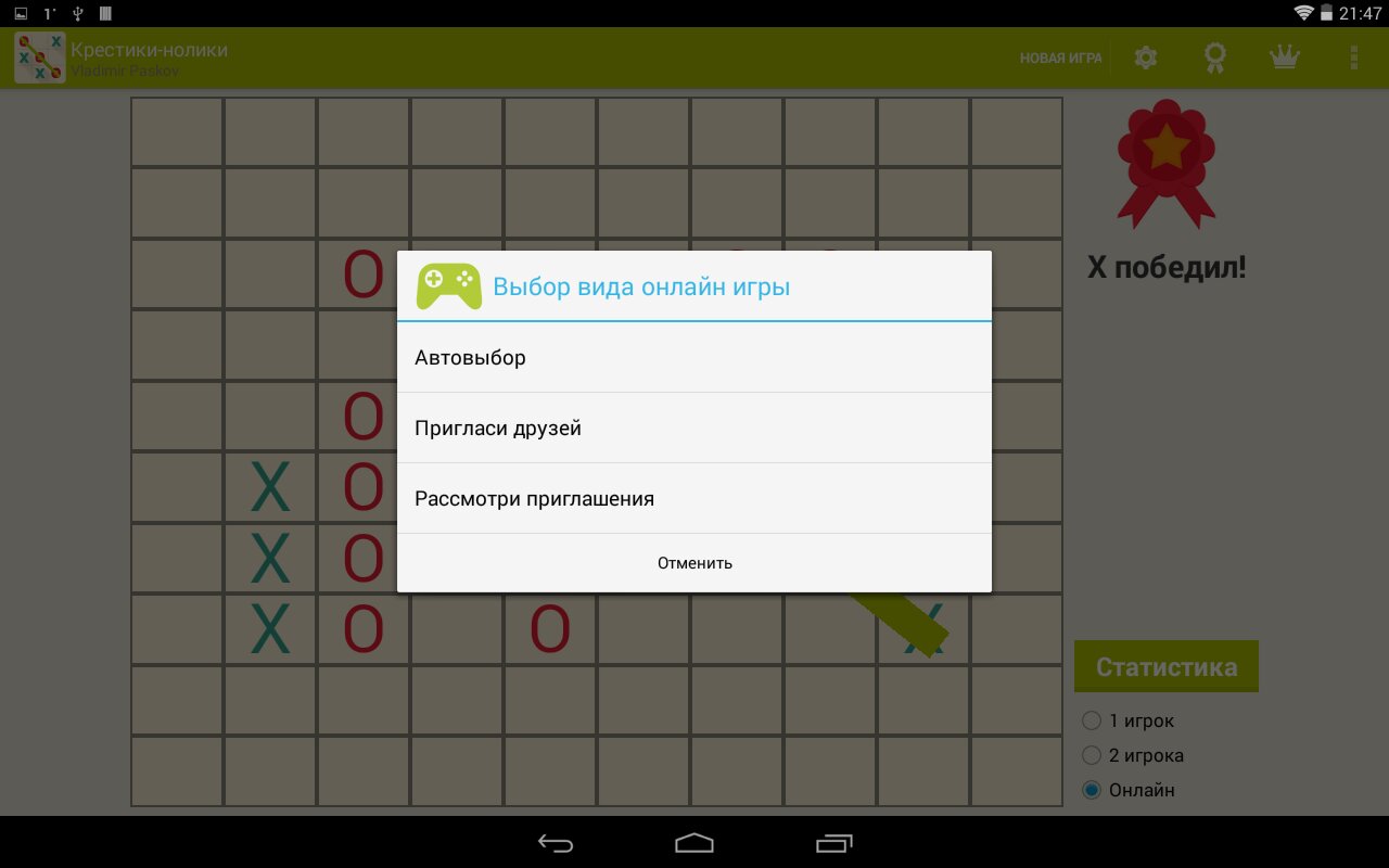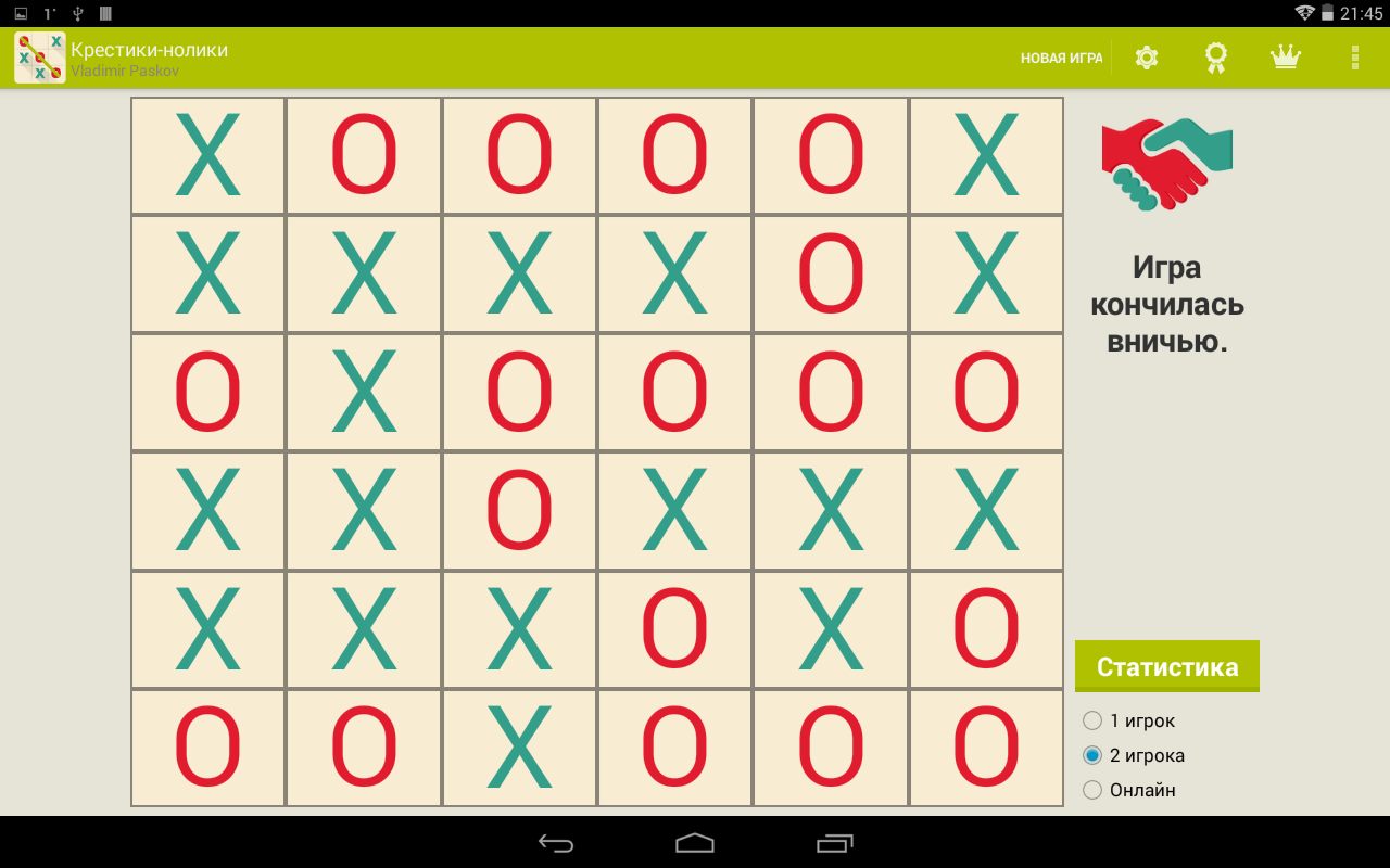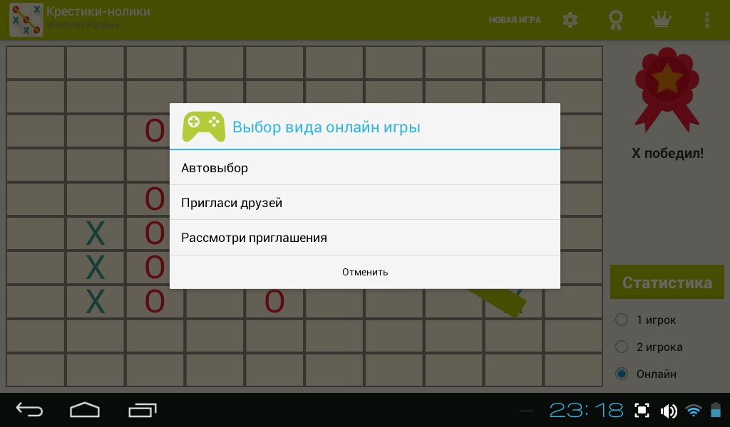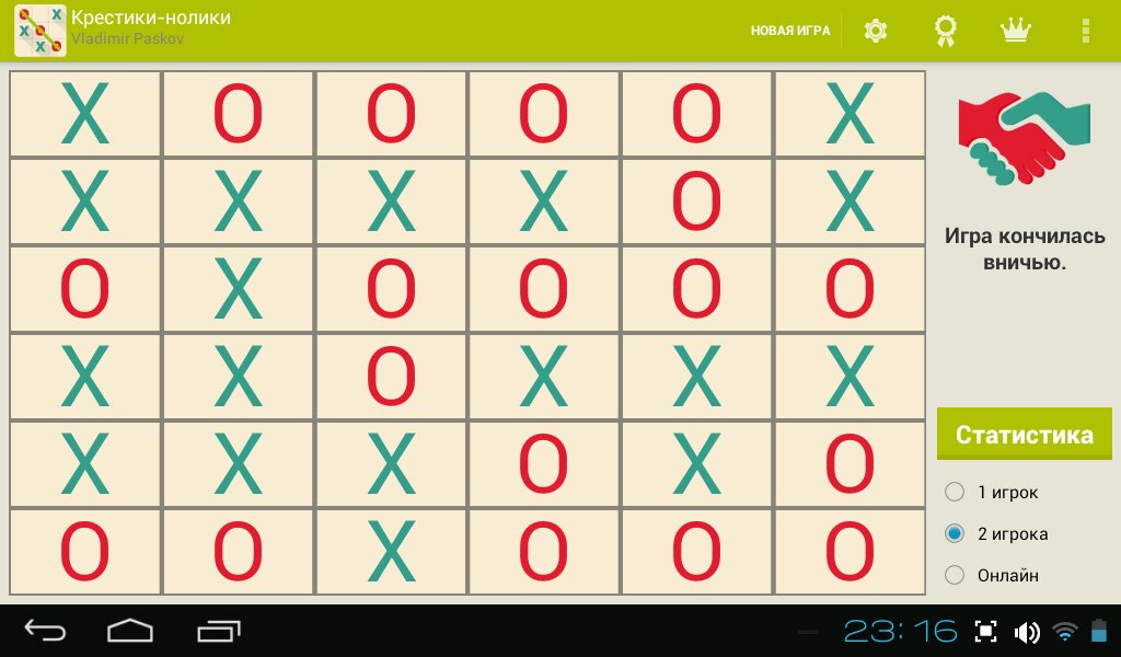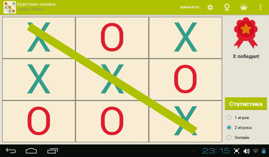 Неплохие Крестики-Нолики. Есть возможность играть с «искусственным интеллектом или другим человеком.