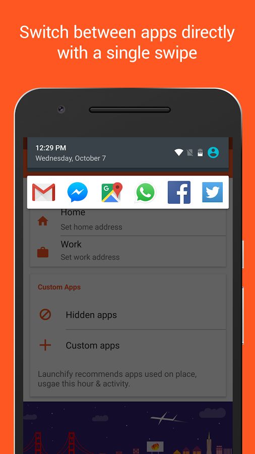 Лаунчер Launchify будет удобен для тех, кому нужен быстрый доступ к самым часто используемым приложениям. Среди прочего стоит отметить, что приложение обладает небольшим искусственным интелектом, который показывает приложения в панели в зависимости от ситуации. Launchify запоминает время и место, когда пользователь запускал определенные программы и рекомендует их именно в эти моменты.