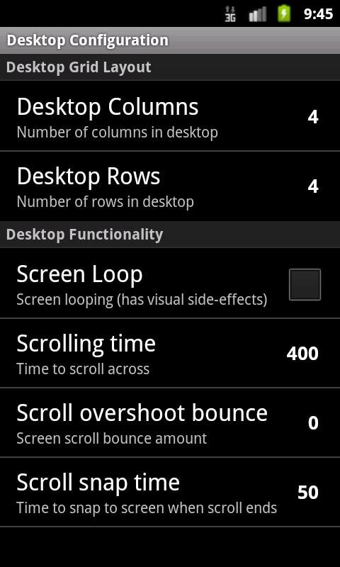 — Изменение количества рядов и колонок на рабочем столе для иконок приложений;