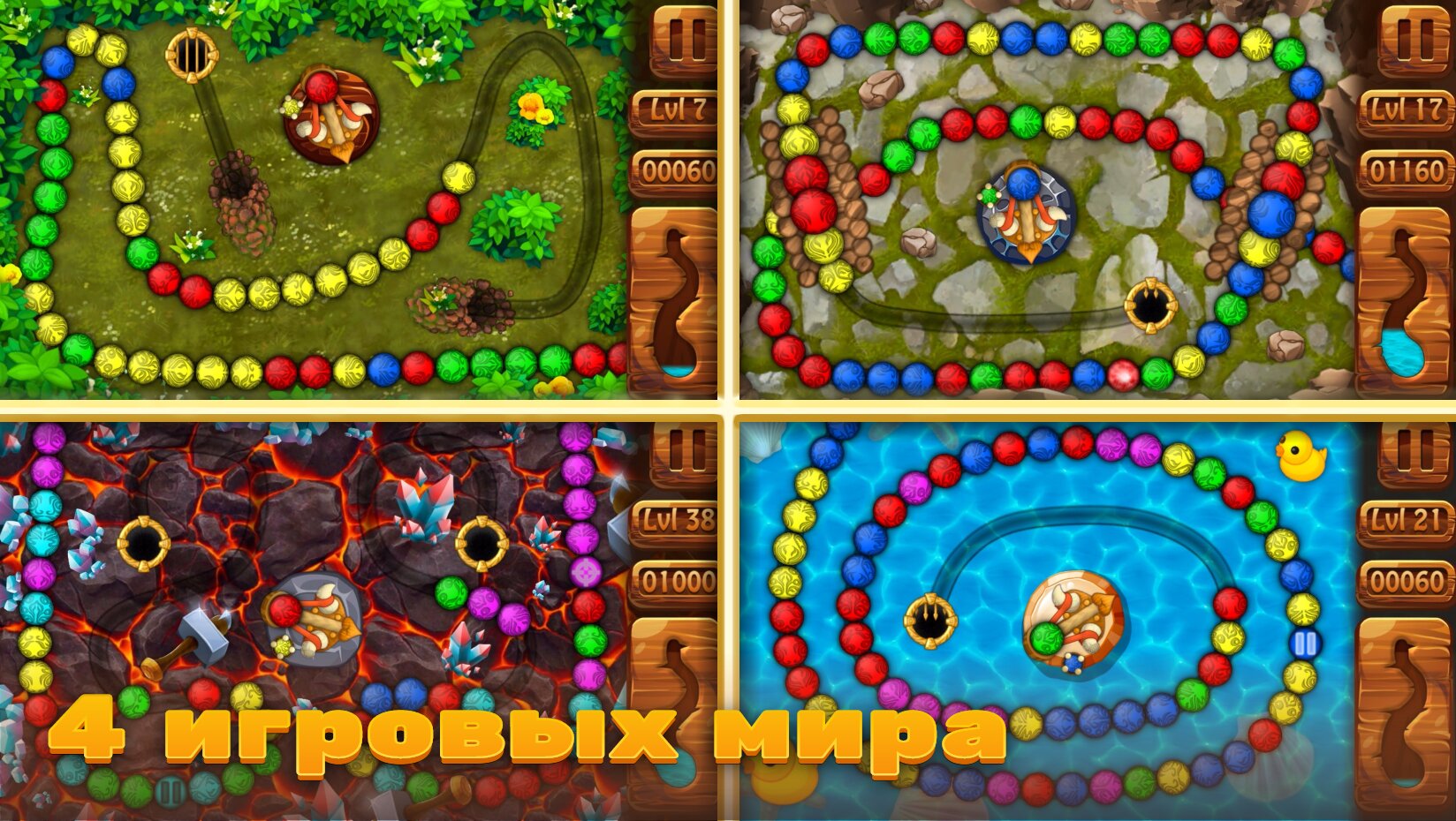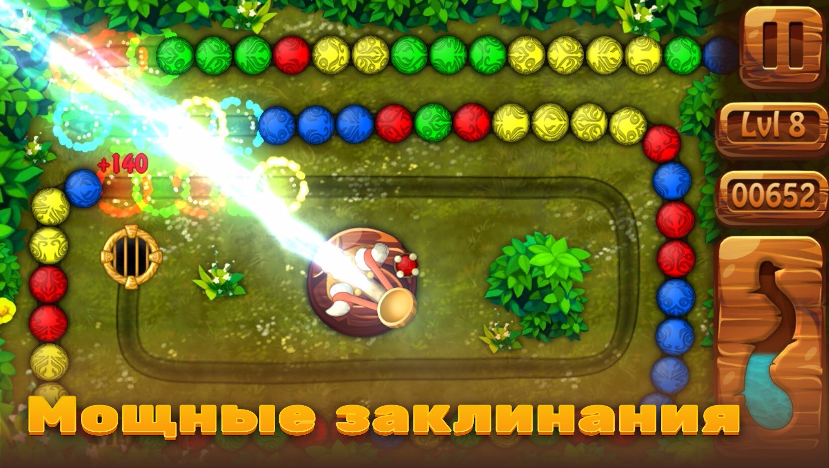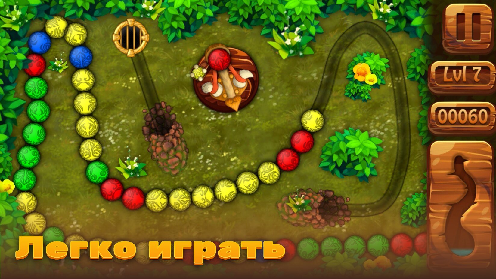 Если вы хотели сыграть в старую добрую Зуму, но у вас не было под рукой хорошего примера, то мы можем предложить вам решение вашей проблемы. Перед вами новое воплощение легендарной Зумы. Мы создали игру с приятной графикой, различными уровнями на интересных локациях и полезными бонусами, которые помогут вам достичь вашей цели. Игра становится сложнее с каждый пройденным уровнем, что удовлетворит потребности хардкорных игроков. Также в игре имеется краткая статистика. Заряжайте вашу баллисту и пускайте ваши снаряды прямо в цель!