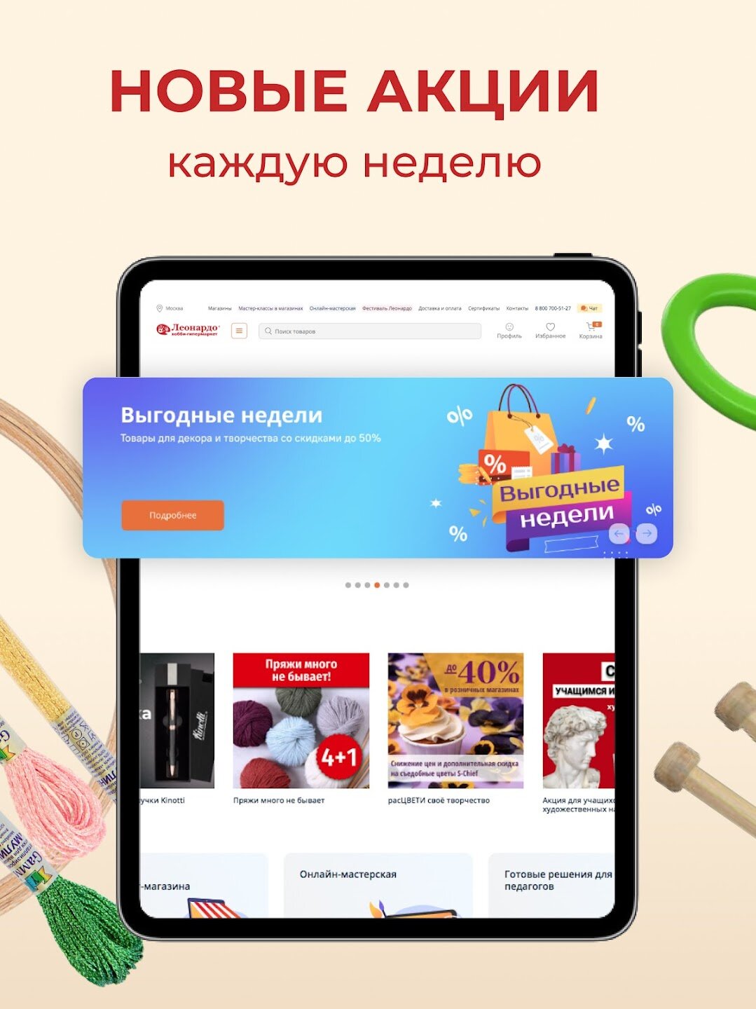 «Леонардо» — лучшее приложение для тех, кто хочет погрузиться профессиональный и детский мир творчества и рукоделия. Простота использования и возможность быстро купить нужные материалы, делает его одним из лучших вариантов для онлайн покупок товаров для хобби. Скачайте «Леонардо» прямо сейчас и откройте для себя новые творческие возможности!💫