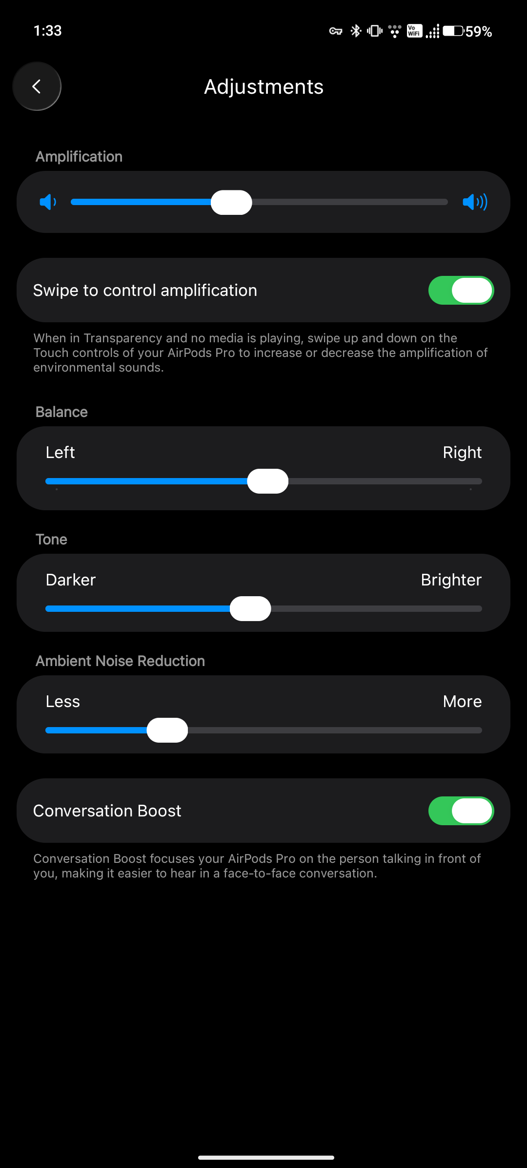 - Адаптивная и настраиваемая прозрачность: ощутите мир вокруг себя с повышенной четкостью. Настройте уровень окружающего звука, который вы хотите слышать.
