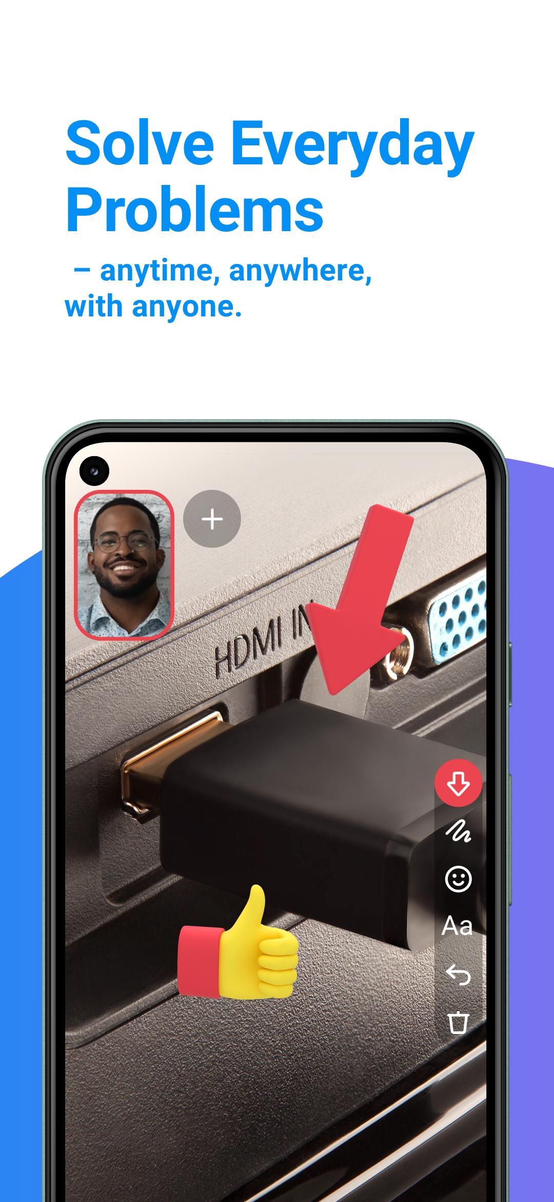 Смотрите, как связь оживает. Получайте доступ к экспертным знаниям своего окружения, к мгновенной поддержке для решения текущих задач с использованием возможностей дополненной реальности — все это прямо со смартфона одним касанием экрана. Ваши родные и близкие смогут видеть то, что видите вы, смогут оставлять свои отзывы, давать советы, использовать эмодзи. Теперь решать текущие задачи можно проще, быстрее и веселее!