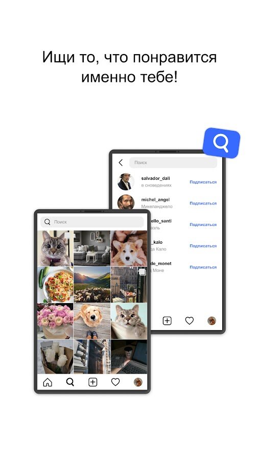 - Поиск в разделах «подписки», «подписчики» и «нравится».