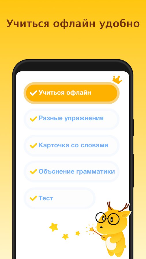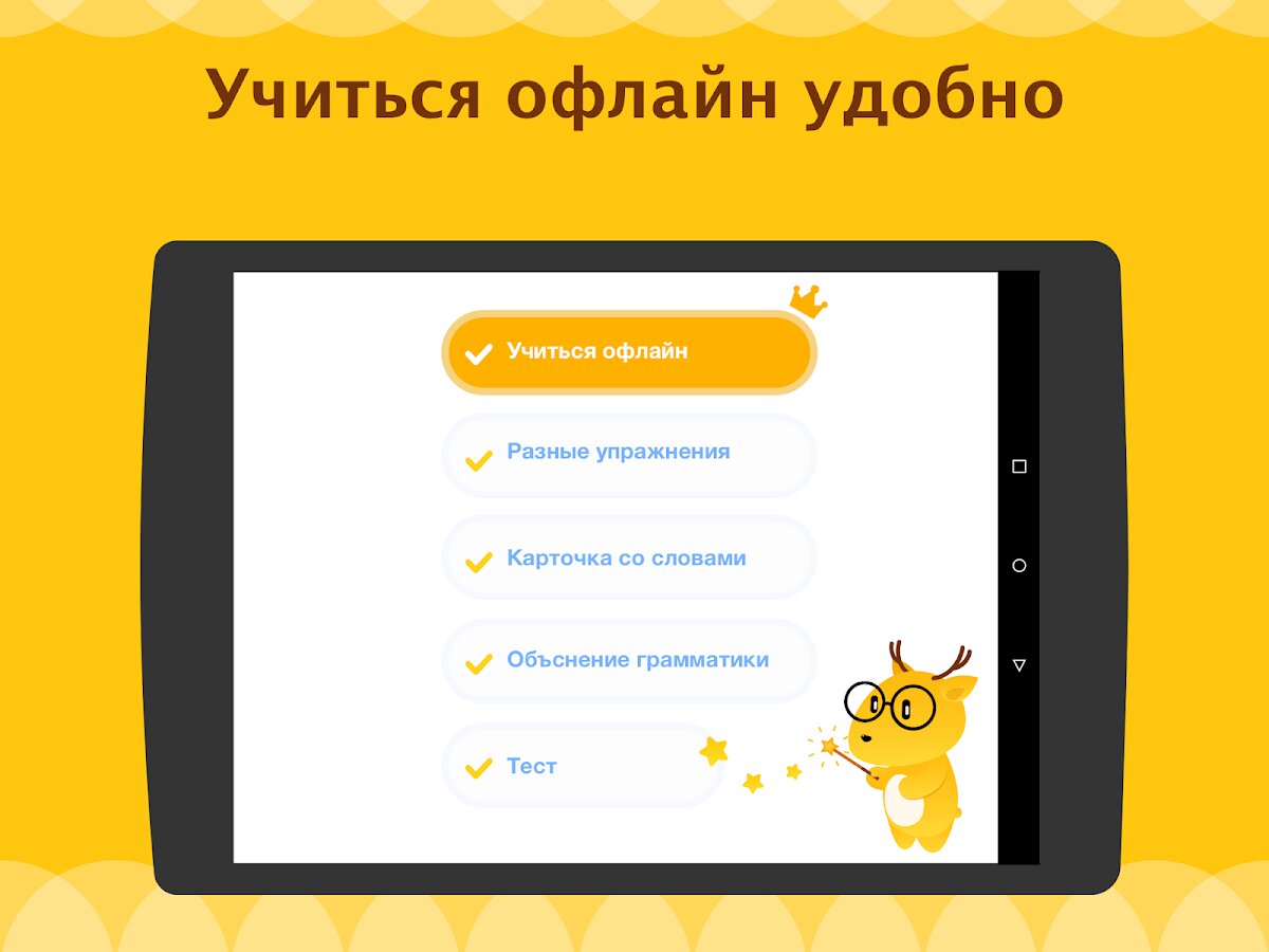 - Нет связи? В самолете? Не проблема! Изучайте языки где угодно, пользуясь оффлайн режимом!