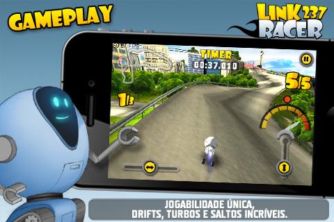 Link 237 Racer — гоночная аркада с сумасшедшими роботами. Выберите своего робота из пяти возможных, установите режим игры и начните гонку по дорогам Бразилии. Управление в игре использует акселерометр устройства, на экране расположена кнопка торможения. Держитесь ближе к этой кнопке, на большой скорости повороты таят большую опасность. Игра получила привлекательную и даже красивую трехмерную графику, которая имеет отличную детализацию и прорисовку моделей. Также разработчики не обошли вниманием и сами трассы, они выглядят достаточно живо и интересно.
