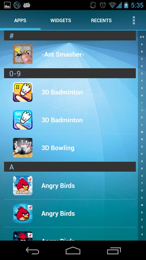 Меню приложений практически ничем не отличается от стокового в Android 4.2, разве что сетка иконок гораздо меньше.