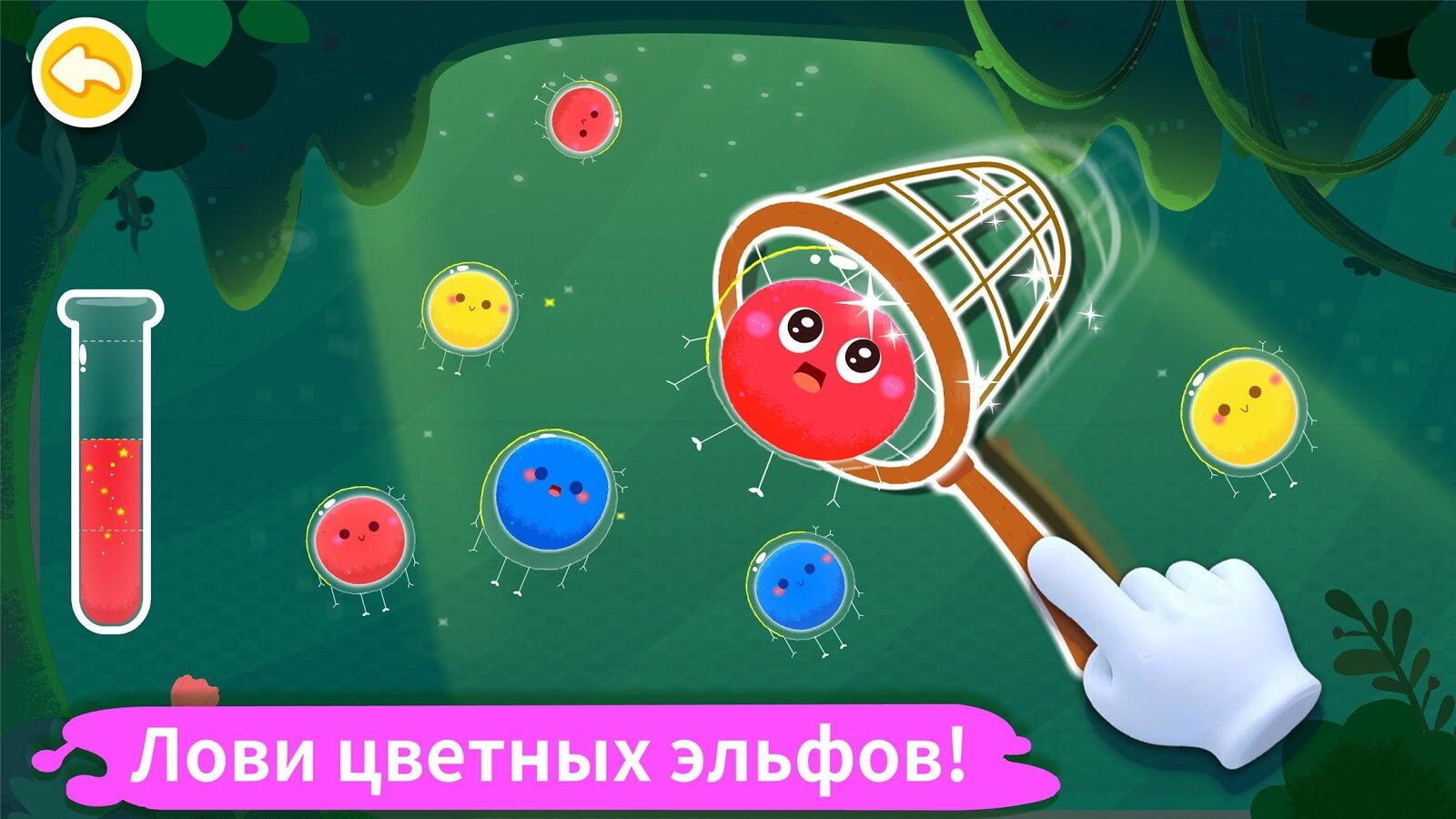- Вперед! Давай соберем цветных эльфов! Направляйся в лес через пещеру и реку, чтобы узнать, где прячутся цветные эльфы.