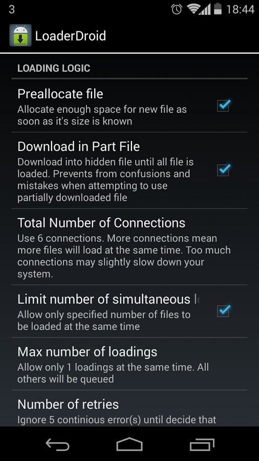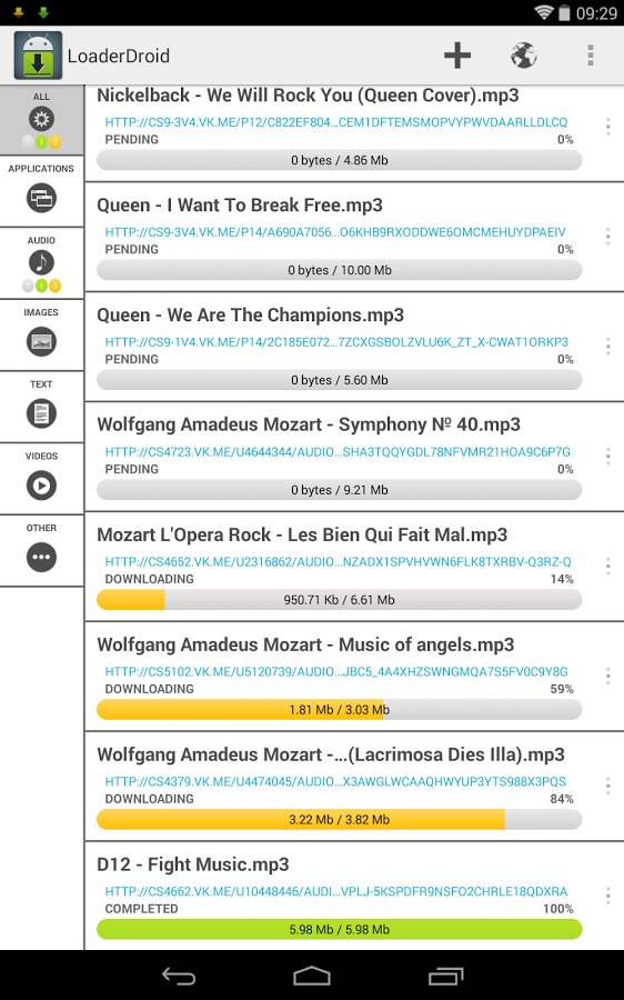 LoaderDroid — это менеджер закачек под андроид. Он способен загружать файл любого типа, без каких-либо ограничений.