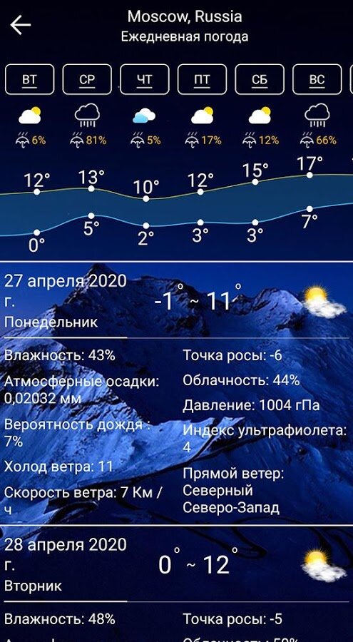 Местная погода — это красивое и удобное приложение с самыми подробными прогнозами на сегодня, 7 и 15 дней.