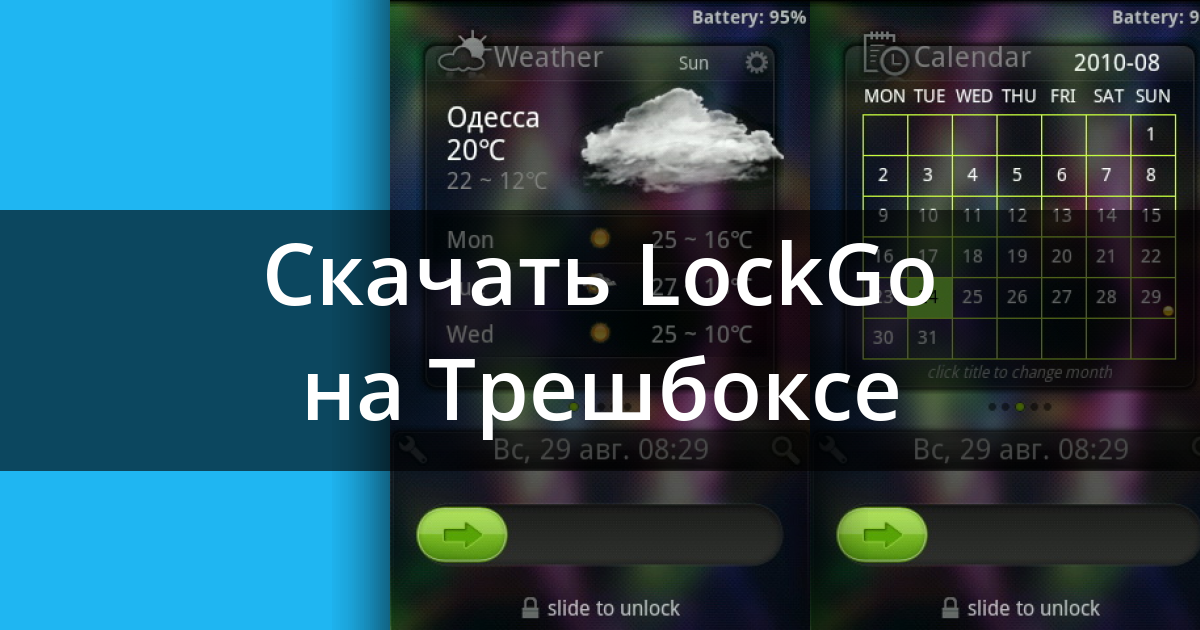 LockGo — screenlock c довольно таки продвинутыми настройками виджетов на нем. Можно использовать как встроенные так и свои виджеты. В маркете есть дополнительные варианты разблокировки.